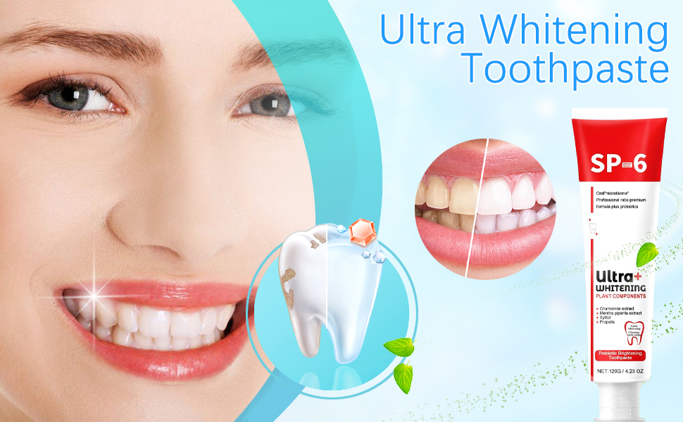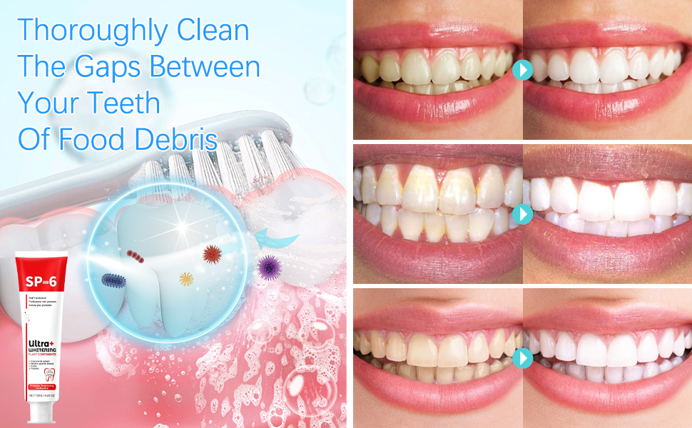 【Fresh Breath】: Enjoy fresh breath all day long with our sp-6 teeth whitening toothpaste. It can not only eliminate bad breath, effectively prevent tooth decay, keep your breath fresh for a long time, and make your smile more confident.