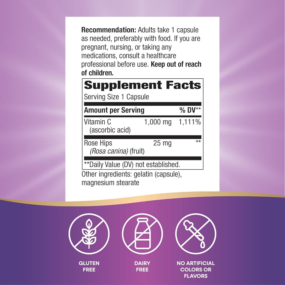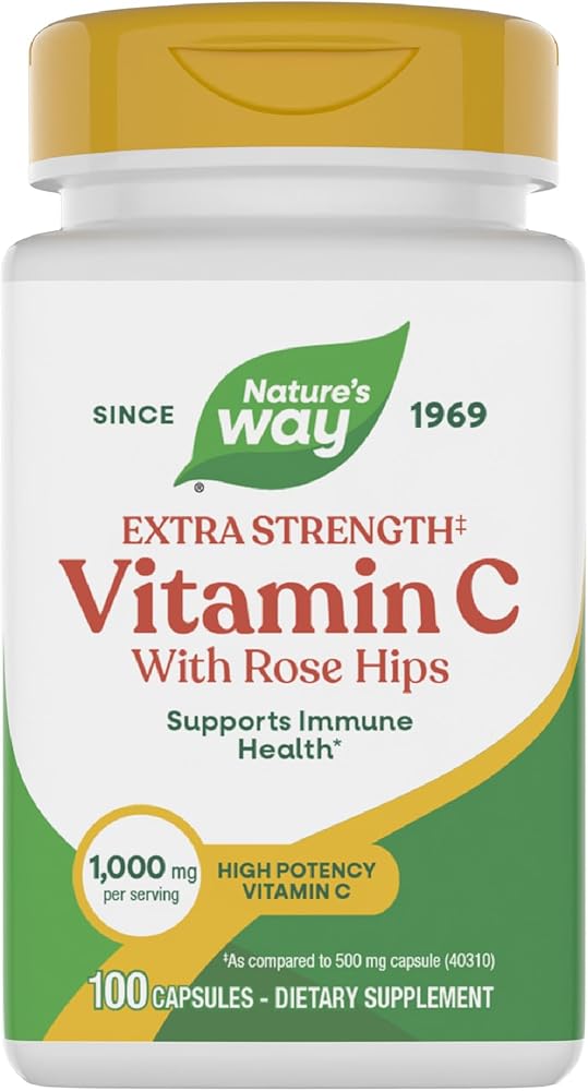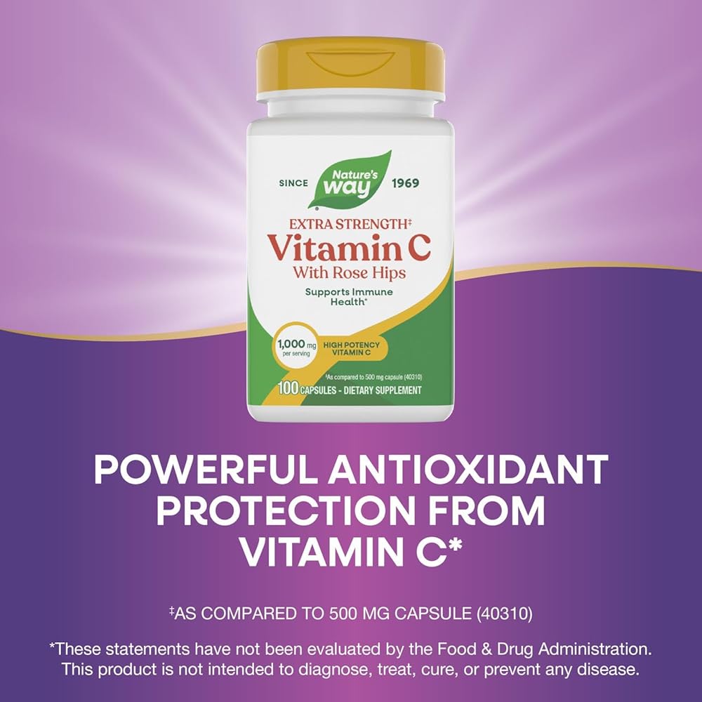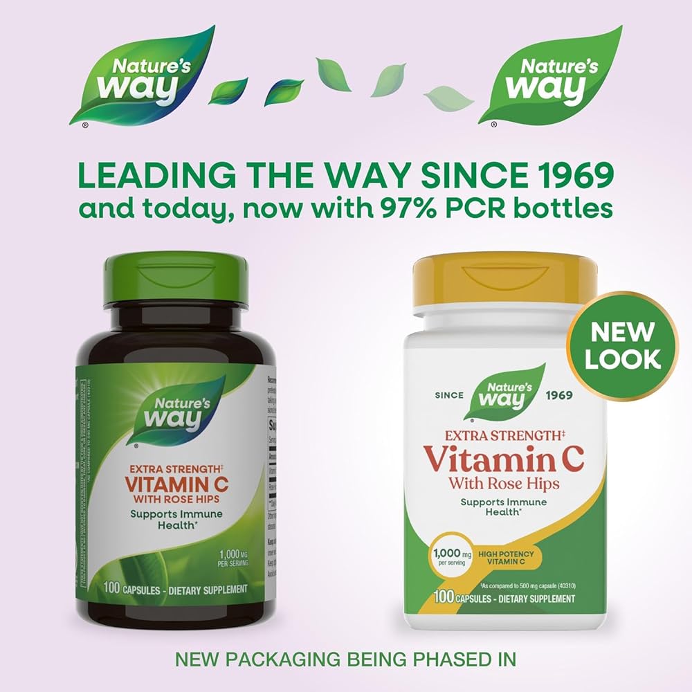 Nature's Way Extra Strength(1) Vitamin C with Rose Hips, Supports Immune Health*, Collagen Production*, High Potency Vitamin C, 100 Capsules (Packaging May Vary)
