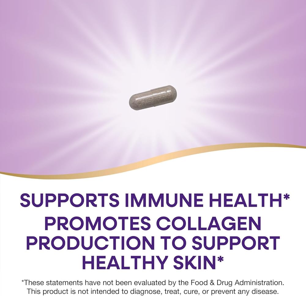 "Nature's Way Extra Strength‡ Vitamin C with Rose Hips provides powerful antioxidant support from vitamin C.* It supports immune health and promotes collagen production for healthy skin.* With 1,000 mg vitamin C per serving. (**Compared to 500 mg capsule.) *This statement has not been evaluated by the Food and Drug Administration. This product is not intended to diagnose, treat, cure, or prevent any disease."