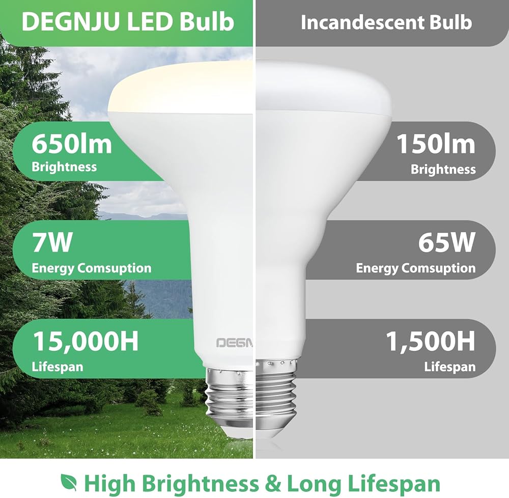 【Brings Out Natural Colors】Soft, comforatable 2700K soft white with high CRI 80+ brings out vivid and natural colors. DEGNJU BR30 led can light bulbs provides 650 lumens of high quality instant-on bright light.
