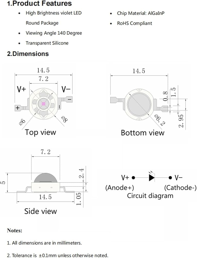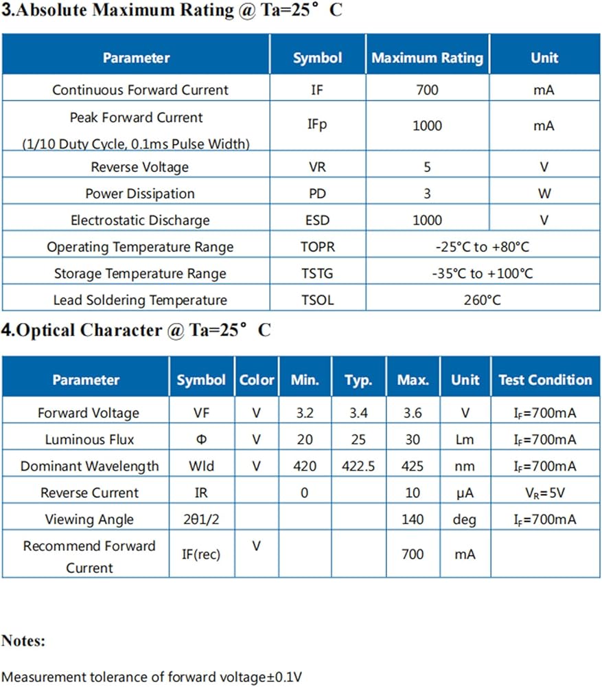 Multifunctional:LED chips can be used as replacement parts for counterfeit detectors, curing machines, PCB circuit boards and violet lighting fixtures, as well as for DIY lighting projects