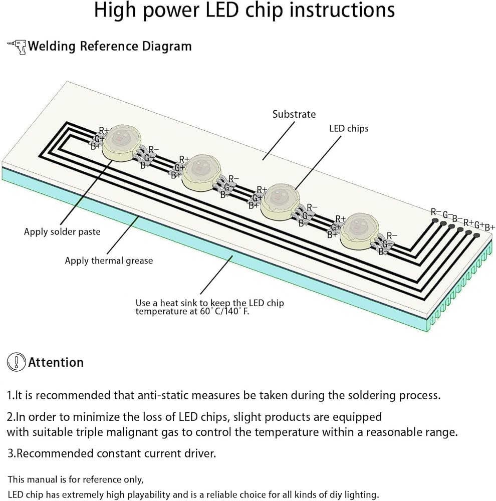 Tip:Proper heat dissipation is recommended, and constant current LED drivers are recommended for best performance