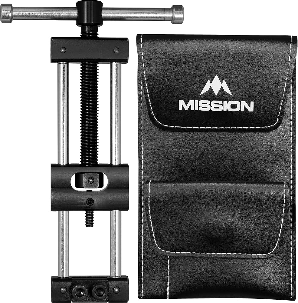 Mission Darts Unisex - Adult R-Point Expert Repointer, Silver-Black, Standard. High-quality repointing tool for changing steel dart tips. Sturdy construction with comfortable operation. Includes bag for storage. Ideal for changing the tips in steel darts. Cheap tool for dart players