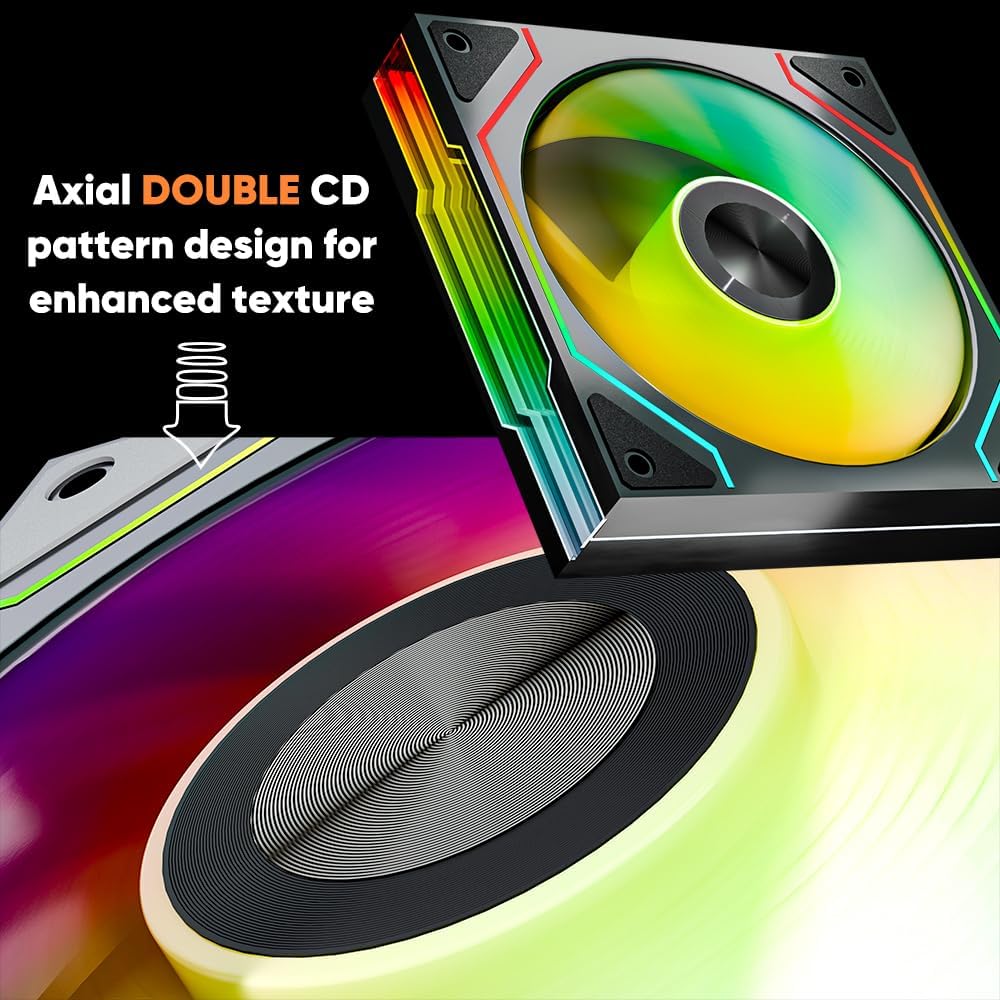 【Stylish Sense of Technology】: Jungle Leopard Star Trall 120mm ARGB Case Fan adopts Two-color CD pattern design for the shaft core to strengthen the lens imaging sense of hierarchy.