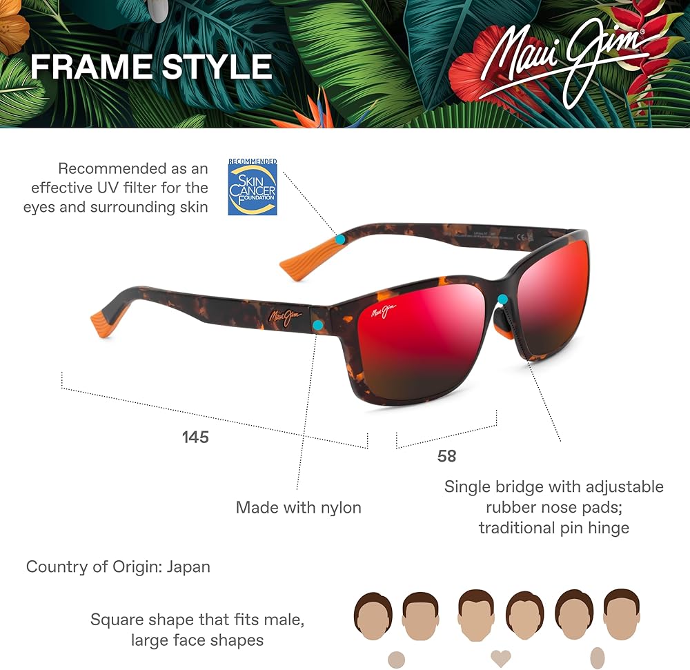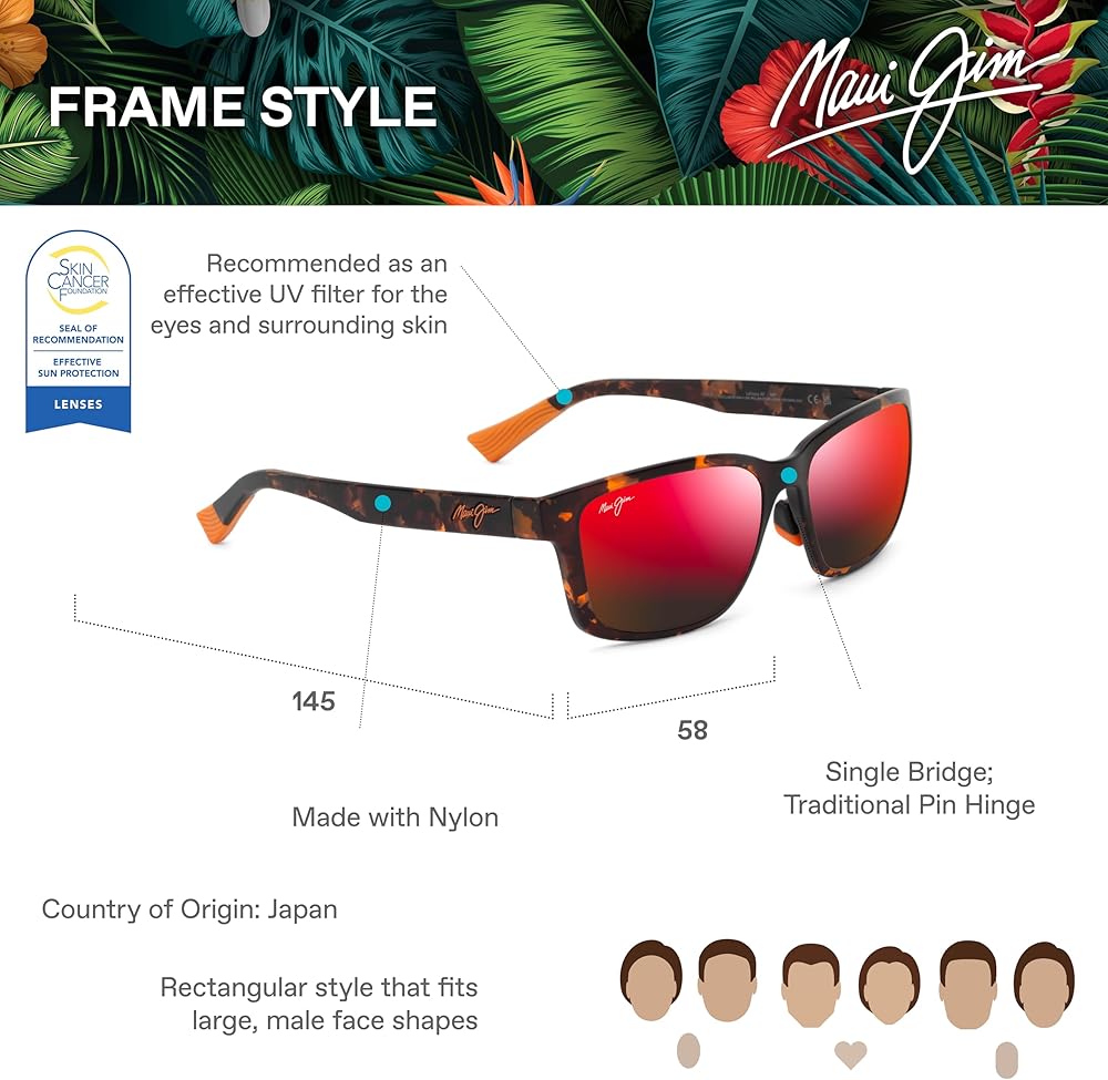 Engage. Lehiwa creates new possibilities in a lightweight, durable framework. Designed with MauiPure, appreciate the details of your daily adventures. Frame Details: Exclusive PolarizedPlus2® lens technology, Color-contrasting script logo on temple exterior, Signature Slash on dual-tone nose pads and temple tips, Signature Wavy Pattern on rubber temple tips