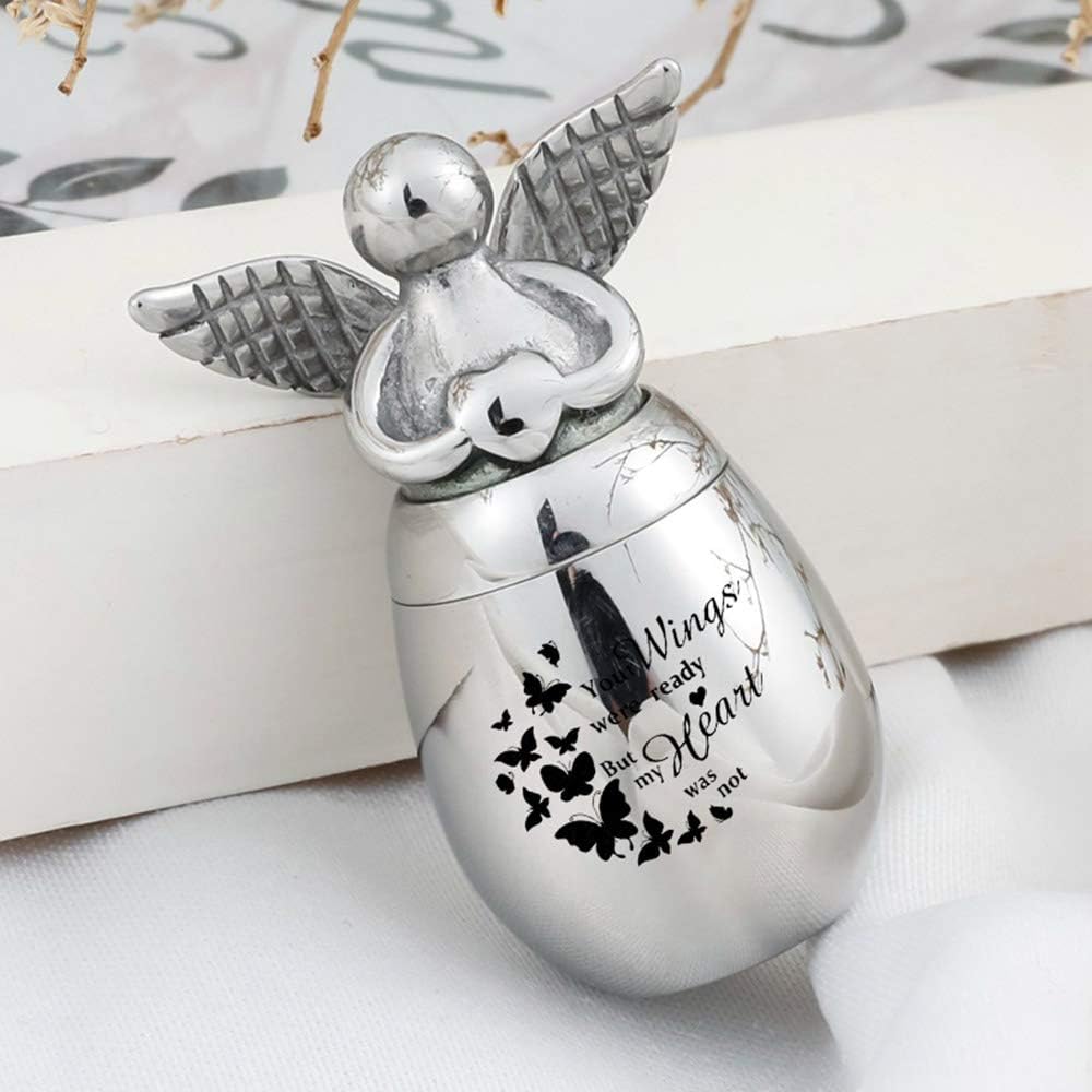 Small Keepsake Urns for Human Ashes Mini Cremation Urns for Ashes Stainless Steel Angel Memorial Ash Jar -Your Wings were Ready, But My Heart was Not (A05)