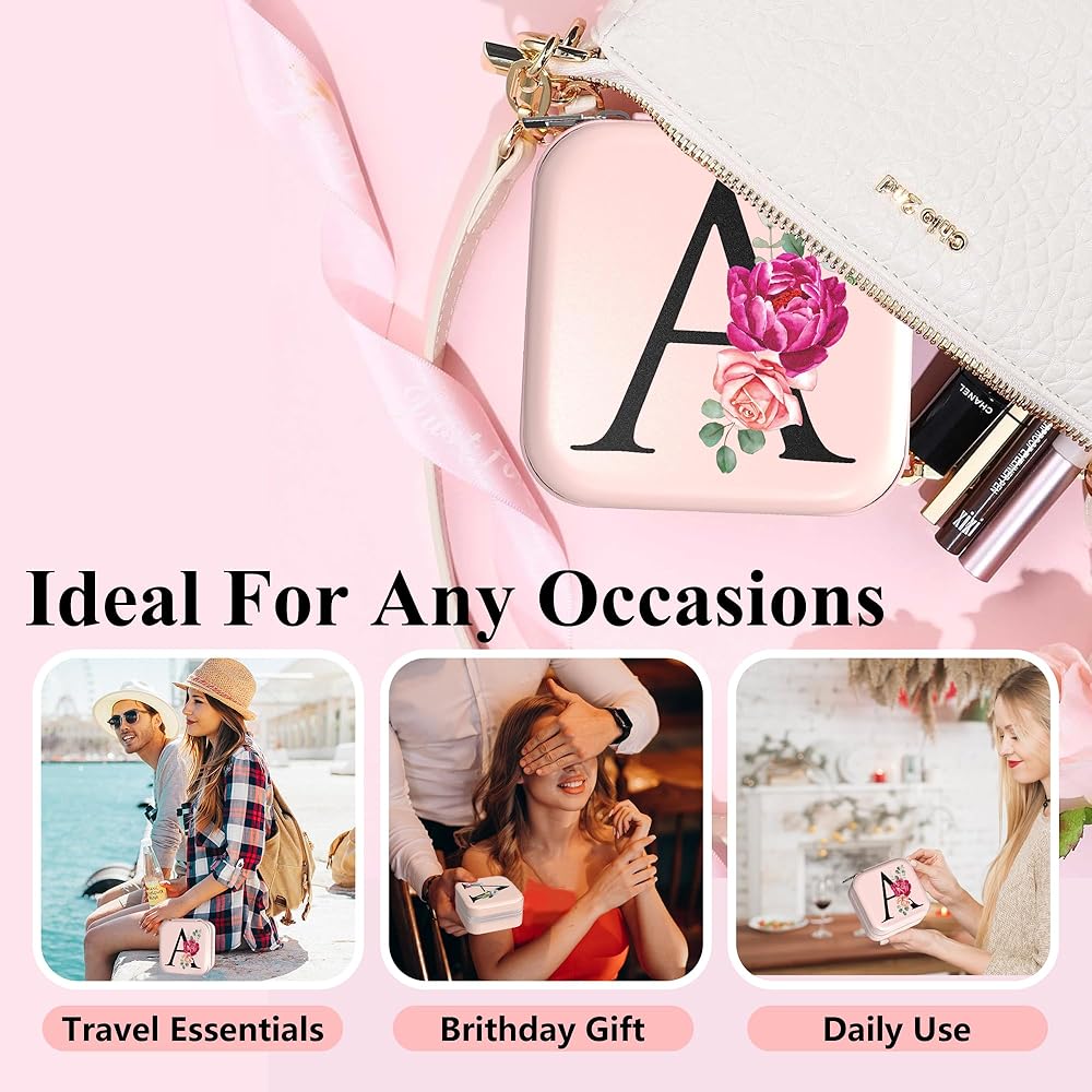 Small Travel Jewelry Case - Initial Jewelry Box Jewelry Organizer Mini Travel Jewelry Box Birthday Gifts for Teen Girl Women Mom Sister Friends Bestie (F)