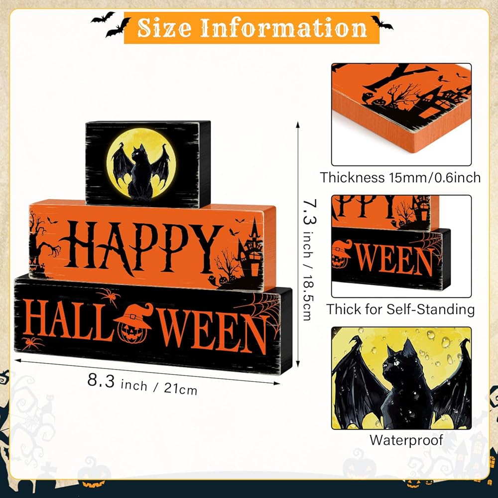 Halloween table centerpiece is crafted with quality wood, safe and odorless, heavy duty and keep in good shape, will not fade and deform, with high precision HD UV Printing tech to achieve bright graphics and water proof effect, reliable workmanship.