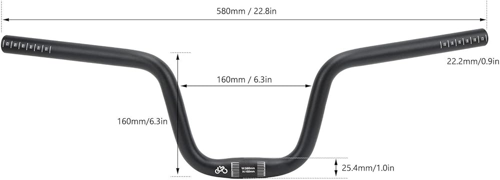 Handlebar, Aluminum Alloy High Strength Bike Handlebar 25.4mm Diameter Black for Cycling(Lift 160mm / 6.3in)