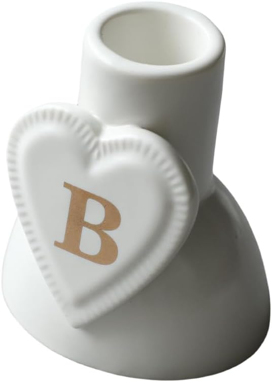 COLLECTIVE HOME - Monogram Heart-Shaped Candle Holders, Personalized Letter Ceramic Stands, Romantic Alphabet Accents, Sophisticated Gift with Exquisite Packaging for Home Elegance (B)