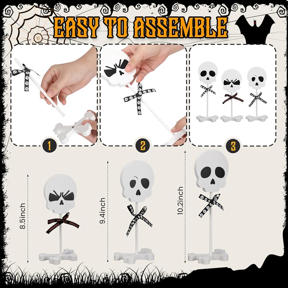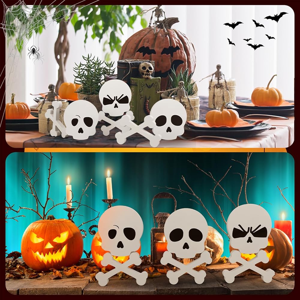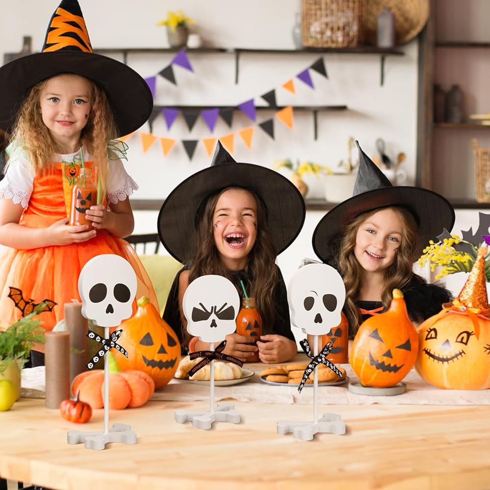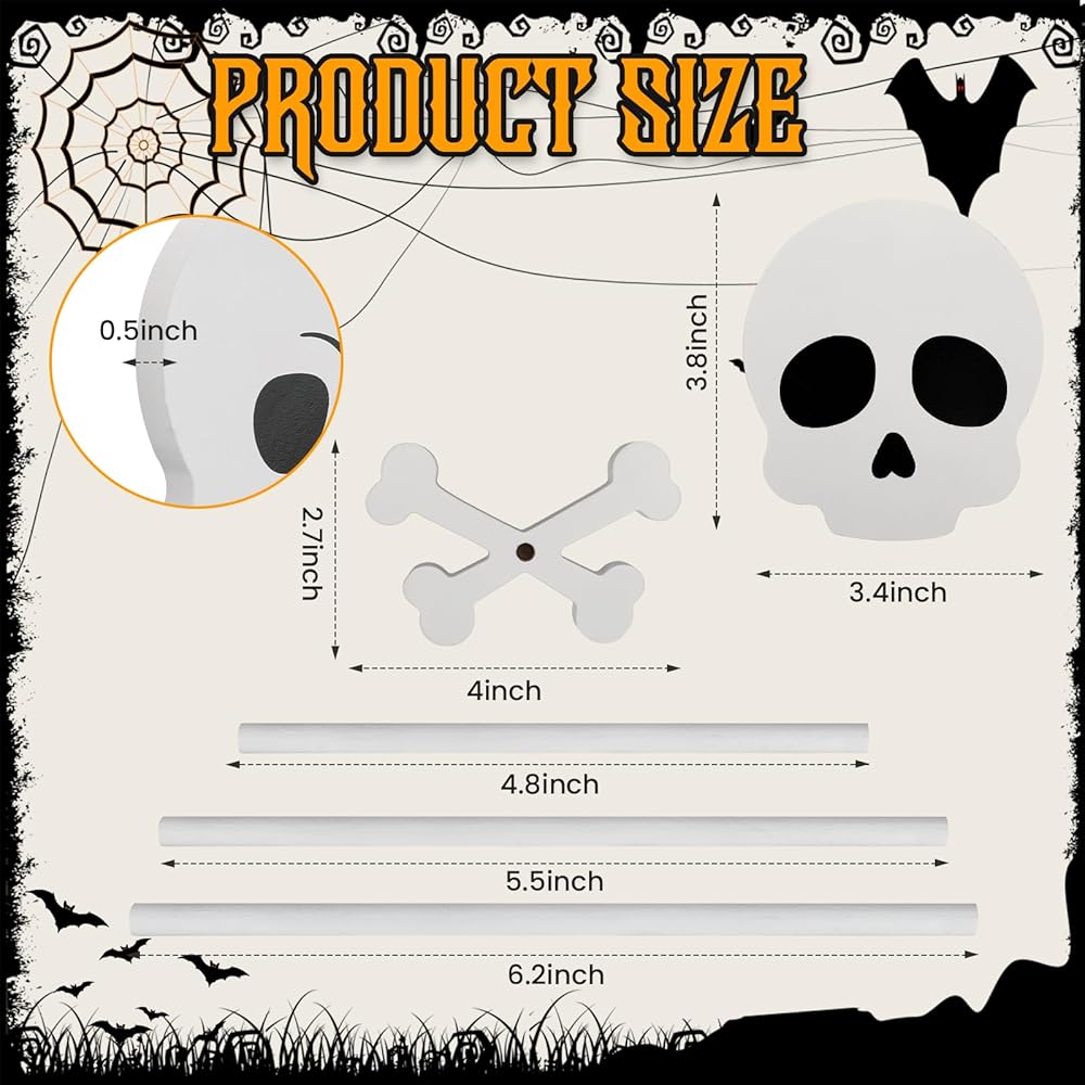 Halloween Table Decoration Set: The package includes 3 wooden skeletons, 3 wooden bones, 3 wooden sticks, and ribbons, making it perfect for Halloween decoration.