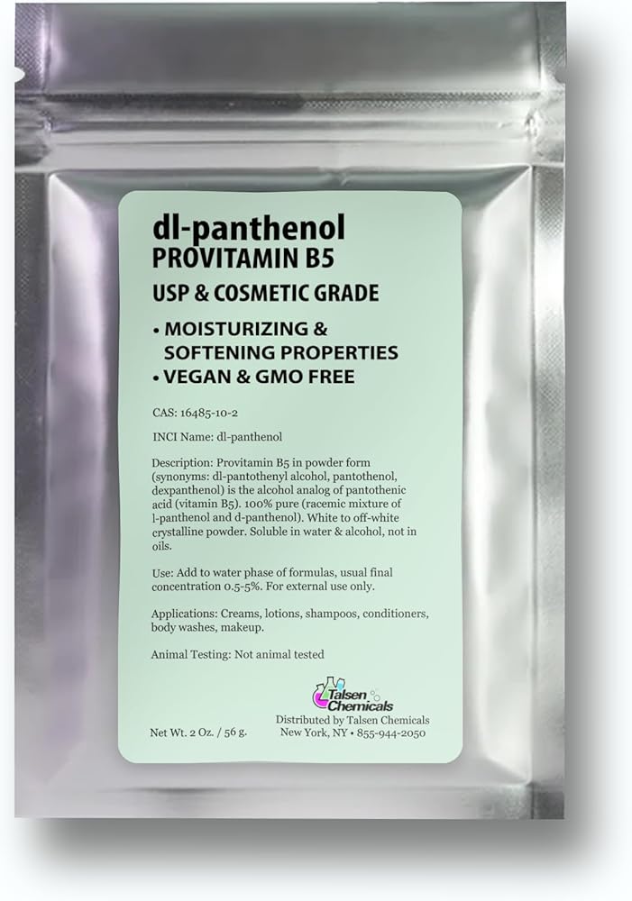 CAS: 16485-10-2 INCI Name: dl-panthenol Provitamin B5 Powder or Panthenol is made from pantothenic acid, also known as vitamin B-5. It occurs organically. Dl Panthenol is used as an additive in various cosmetic products around the globe.