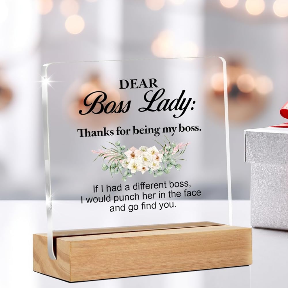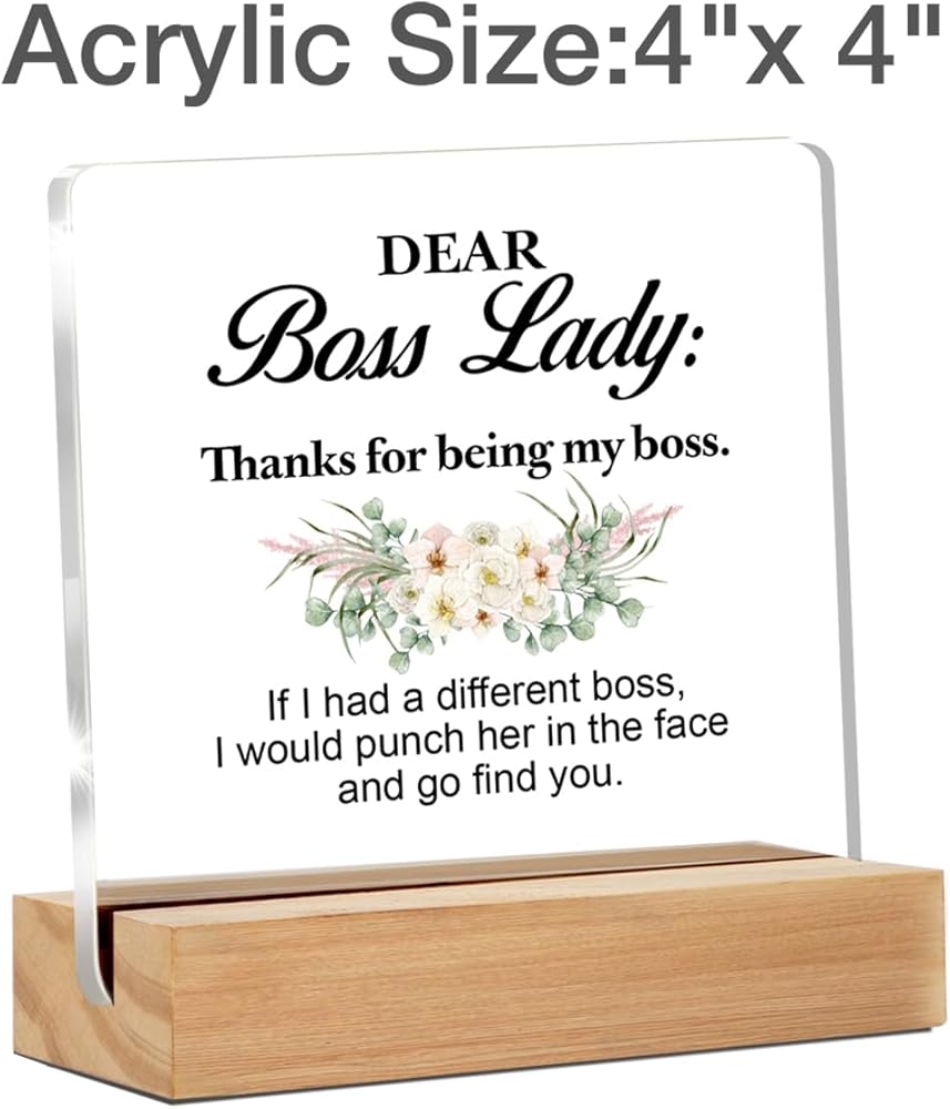 Funny Boss Lady Gifts, Thank You Appreciation Gift for Women Boss Lady Leader Manager Birthday Christmas Retirement Clear Acrylic Desk Sign for Home Office Decor, 4 x 4 Inches