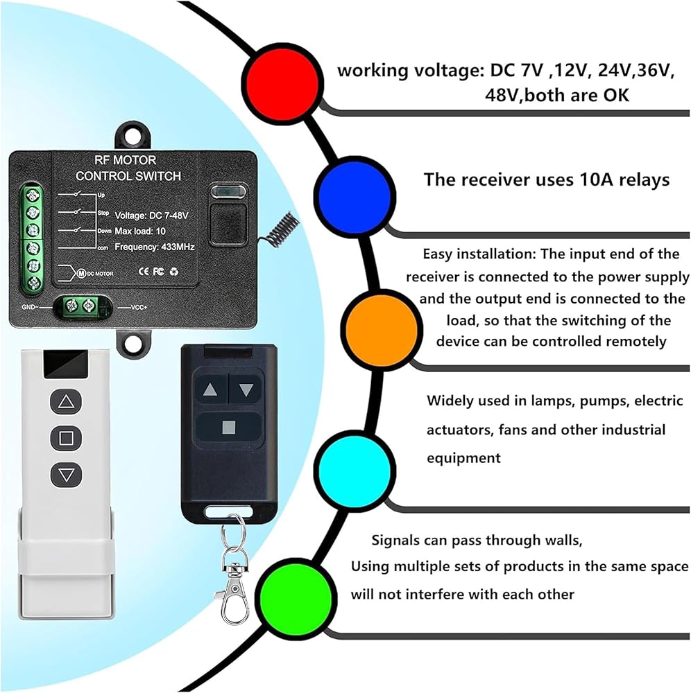Forward Reverse Remote Control Switch,DC7V-48V 10A Switch,Linear Actuator 12V Remote Control Switch,328 ft Remote Range,for Linear Actuators,Electric Shutter Doors,Winch Electromagnetic