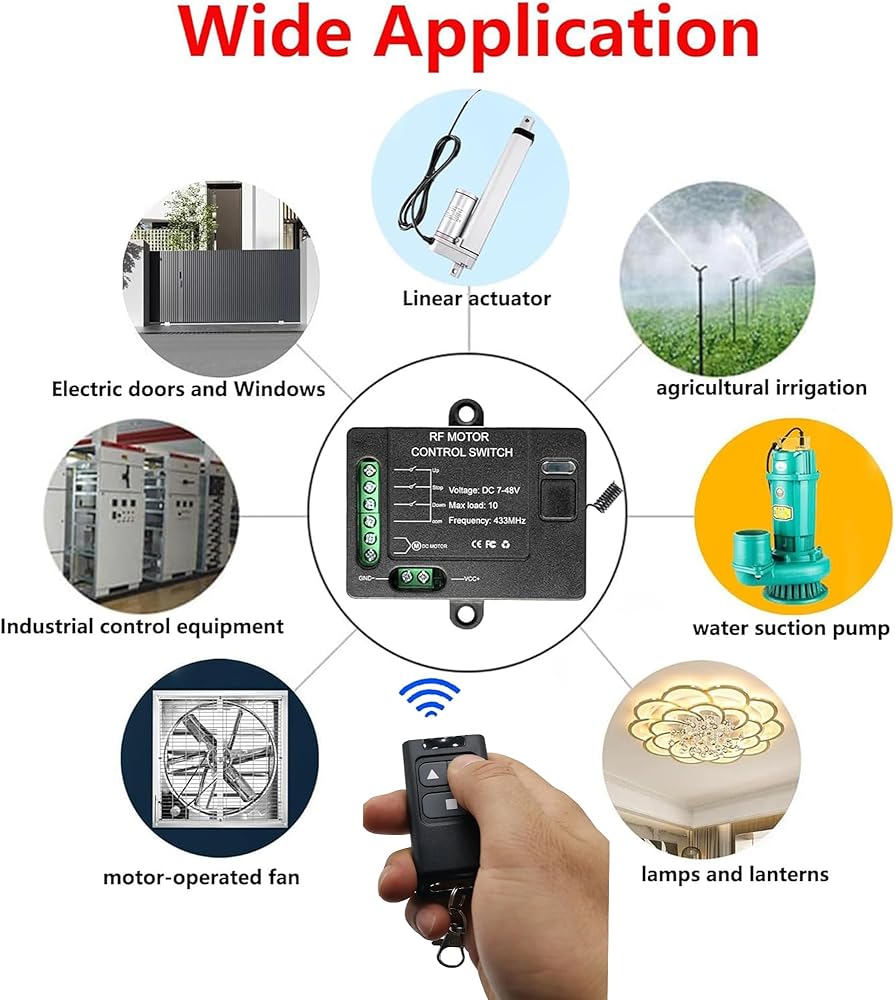 4.Wide application: Programmable RF transmitters and receivers are small, can be installed in a narrow space, widely used in linear actuators, traction winches, household appliances, garage doors, electric awnings, electric curtains, positive and negative motor and any application with positive and negative motion