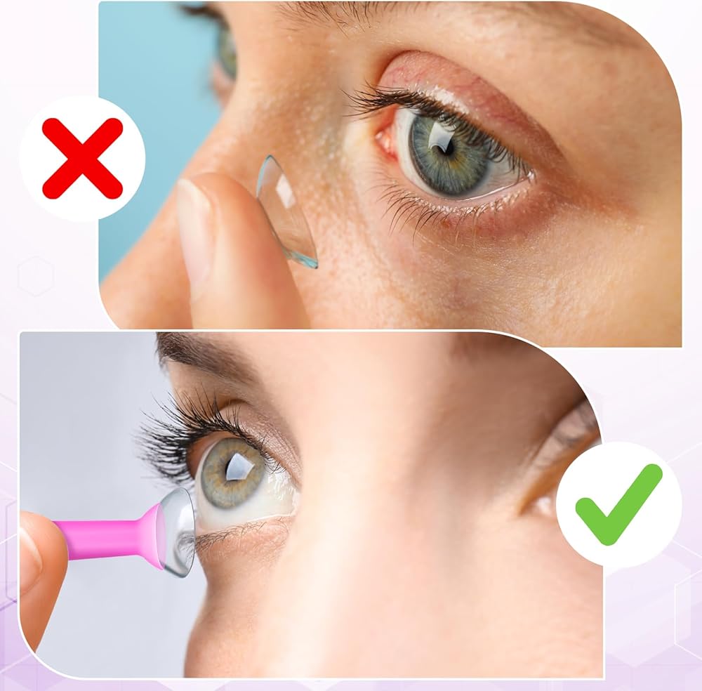 【Enough Suction】Wet the contact lens remover tool and gently hold it squarely over the contact lens. Aim at the contact lens and push the hollow part of the remover. The lens will attach to the stick and can be easily removed from the eye. This hard contact lens remover plunger makes it easy to take out your contact lenses without much discomfort.