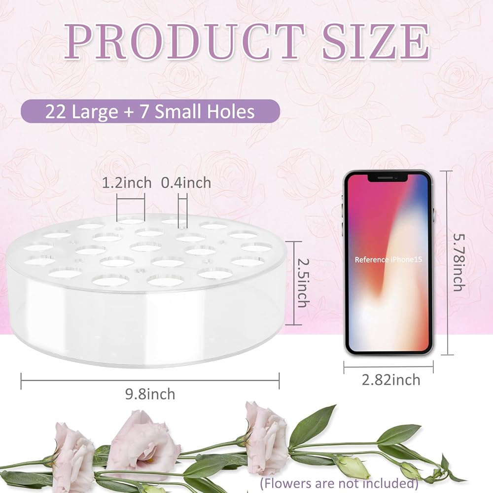 💐Robust Yet Refined: Constructed from premium 4mm thick acrylic, our round acrylic flower vase with holes is both lightweight and durable, designed to withstand scratches and impact. Each piece is meticulously polished for a flawless finish, ensuring not only your safety but also a touch of sophistication to your decor.