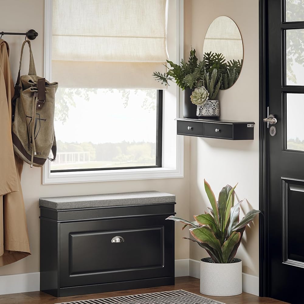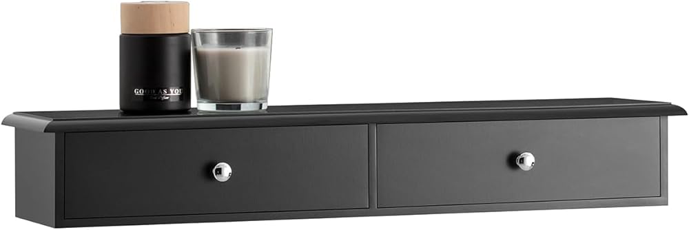 أرفف عائمة باللون الأسود من Haotian مع درجين، وحدة تخزين عرض مثبتة على الحائط، رف جداري للصور، ديكور المنزل والمكتب FRG43-SCH