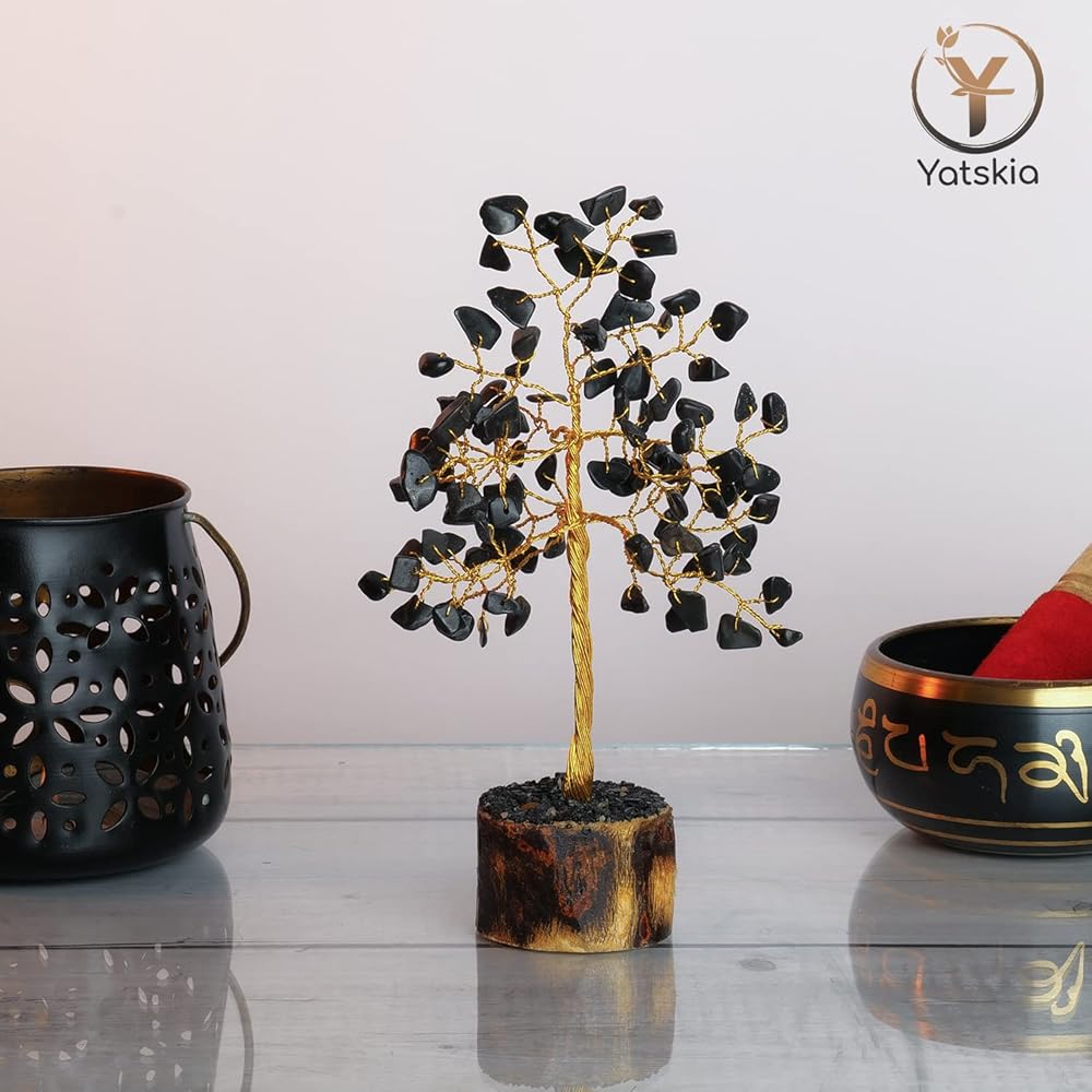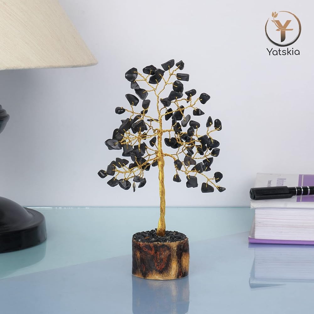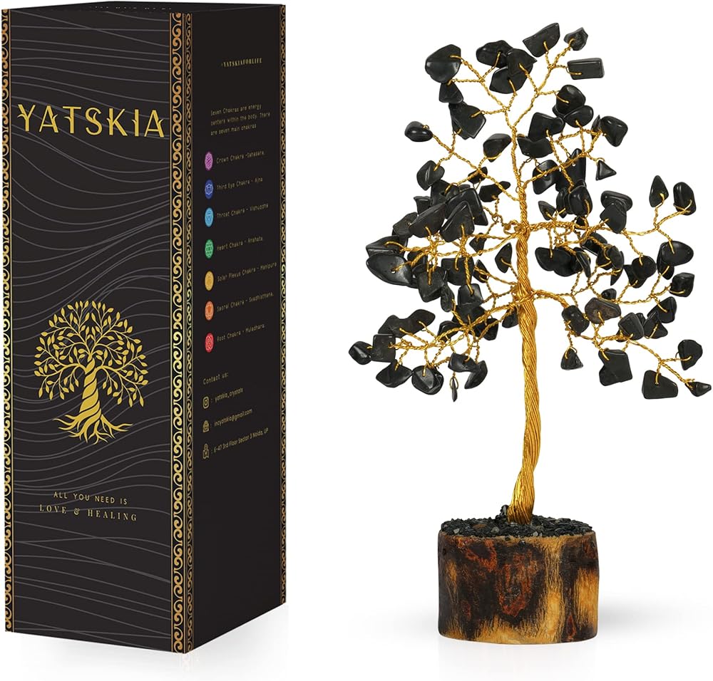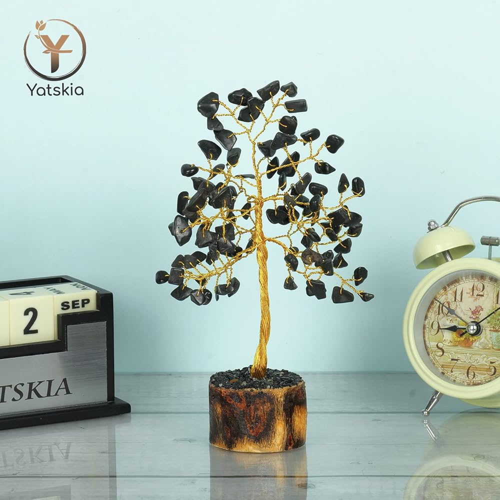 YATSKIA Black Tourmaline Crystals - Gemstone Tree - Black Tourmaline Decor - Artificial Money Tree - Mini Artificial Trees - Tourmaline Gemstones - Spiritual Trees