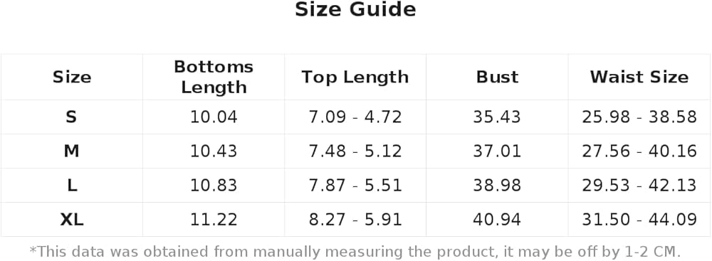 XL:Bottoms Length:11.2IN,Waist Size:31.5-44.1IN,Bust:40.9IN,Top Length:8.3/5.9IN