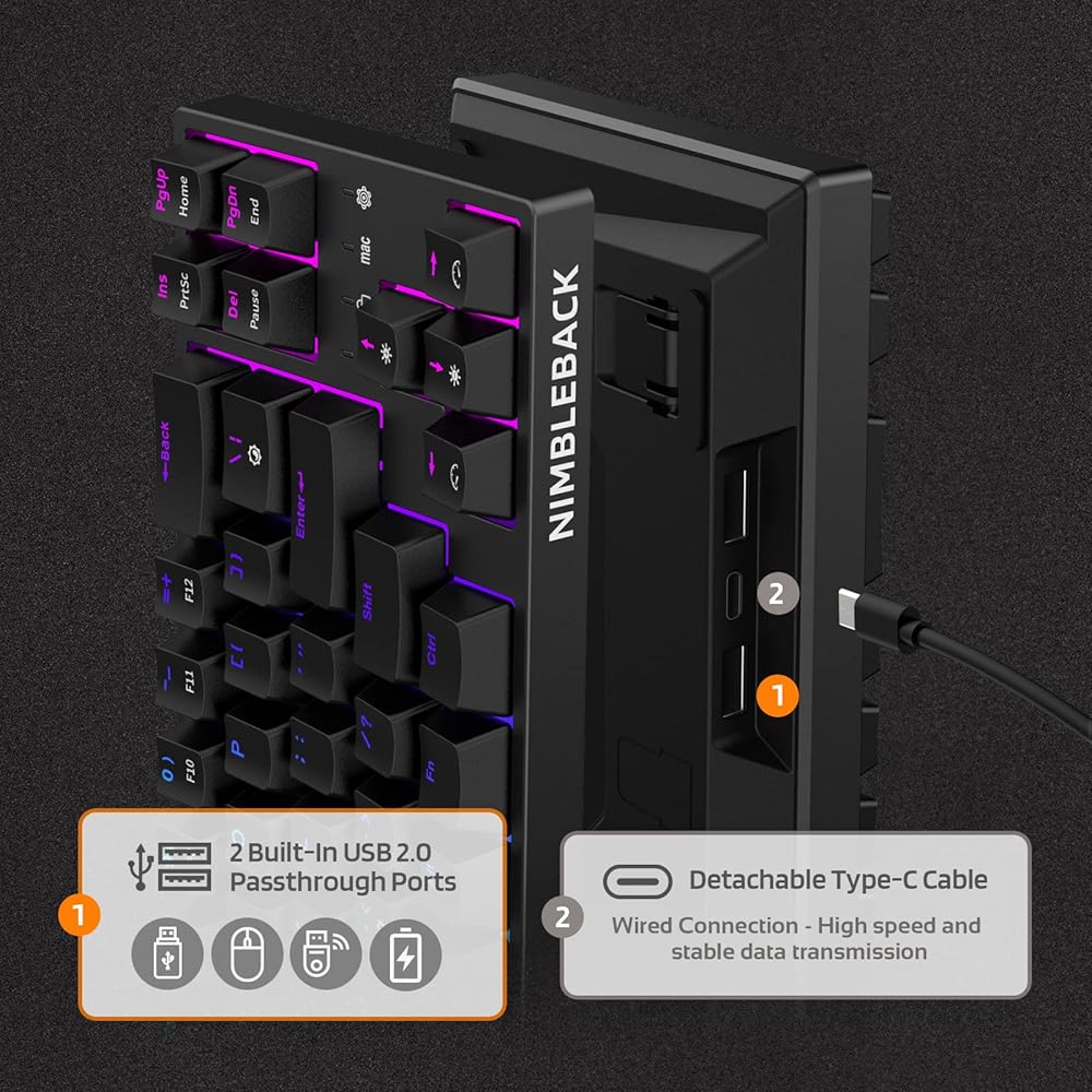 2 USB 2.0 Ports and Type C Wired Connection - 2 built-in USB passthrough ports allow you to connect more periphery devices such as mouse and flash disk directly into the keyboard for easy access and faster productivity. You can also use it as charging ports for cell phones and accessories. The type C wired connection method guarantees a high speed and stable data transmission.