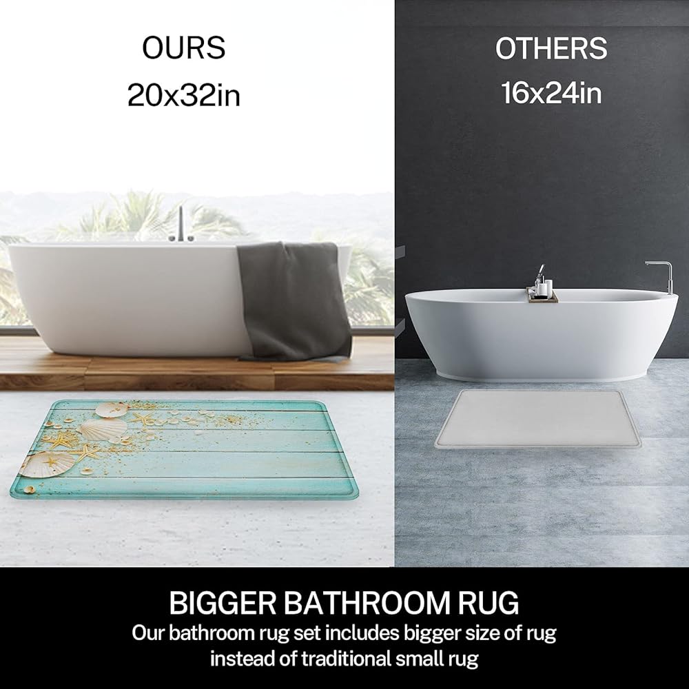 The Size of Bath Rug Set: 24"L * 16"W, 18"L * 15.7W, 16.5"L * 15"W. Improved bathroom mat is thicker than ordinary bathroom rugs. There will be a feeling of support and more comfort when you step on it. Protect your feet from the cold floor at the same time it protects your floor from moisture.