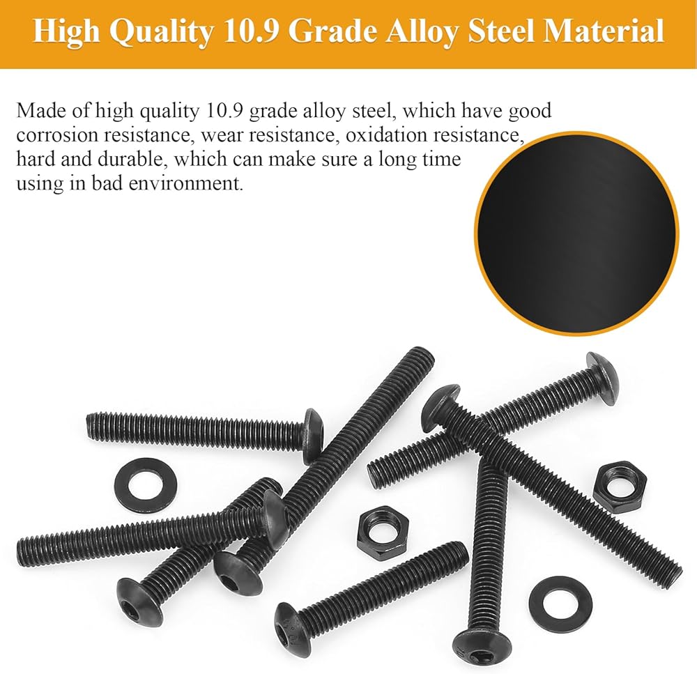2, Sutemribor M5x30mm black button head socket cap screws are well made, with smooth surface, which are commonly used in machinery, it mainly has the advantages of easy fastening, disassembly, and not easy to slip corners.