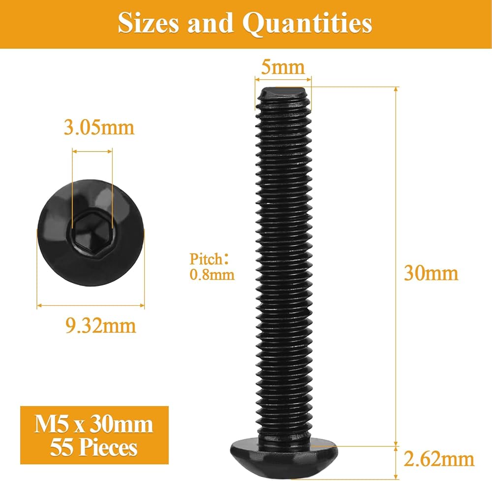55 Pieces M5 x 30mm Black Button Head Socket Cap Screws