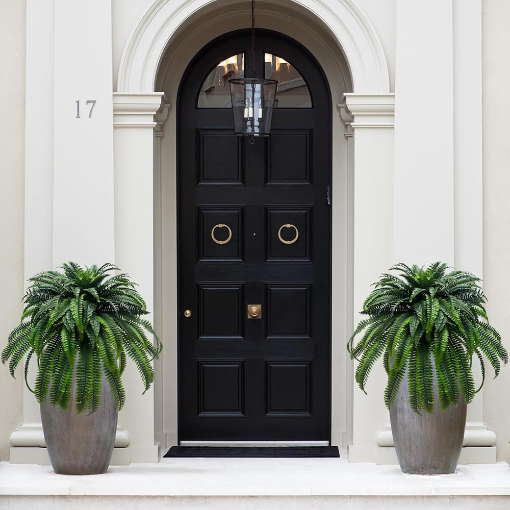 1.Artificial plants for outdoors : The naturally fresh color fake plants greenery creates a cozy ambiance, faux boston fern bush bushes in lush green sustain the sunlight of spring for you in any time, shining and twinkling, rest your mood and wonder. well made and vibrantly colored look lifelike.