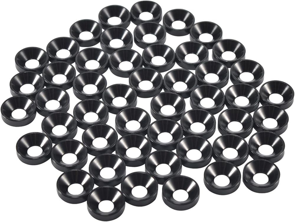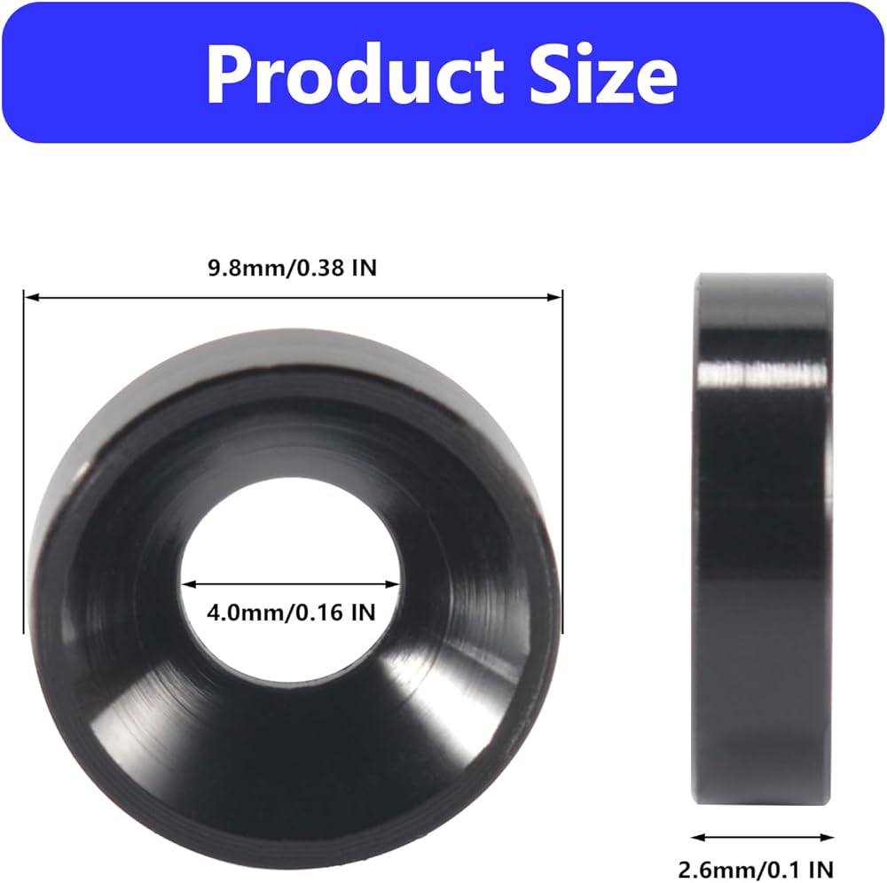 [50PCS] M4 Finishing Countersunk Washers, Anodized Aluminum Alloy, Head Washers Gaskets Cup Shim for Screw RC/FPV/PC/Drone/Mechanical Accessories Parts, Black