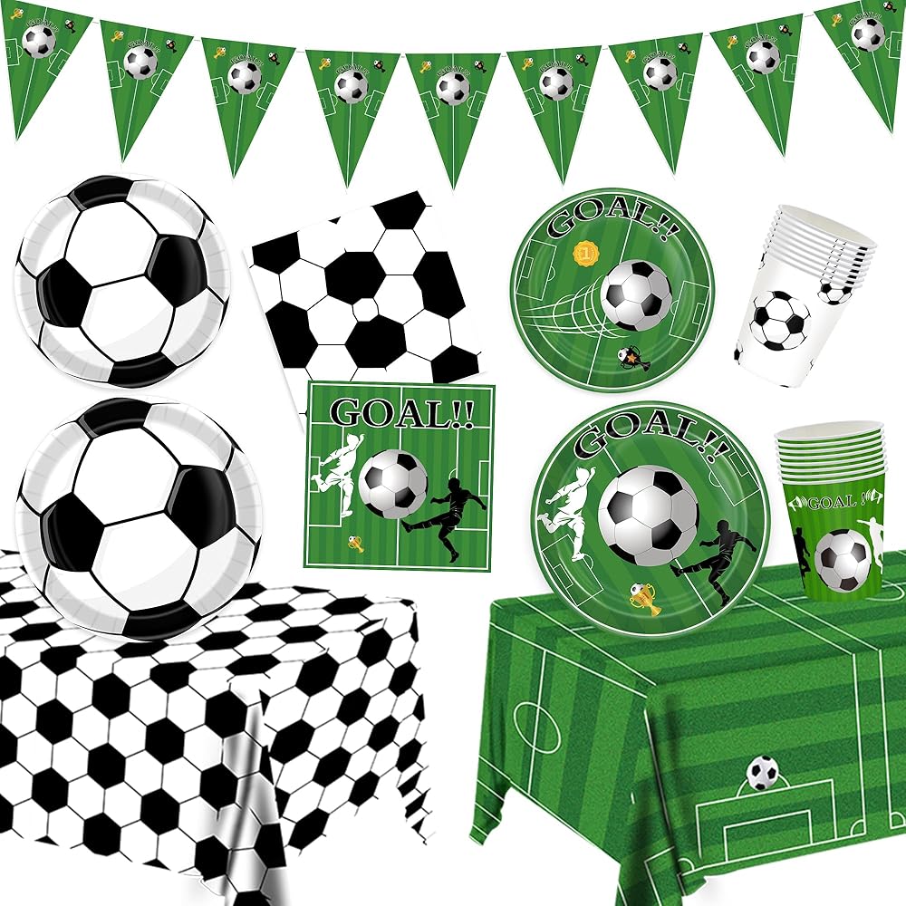 Soccer Birthday Party Decorations Tableware Set Soccer Party Supplies Soccer Theme Party Decorations Paper Plates Napkins Cup Tablecloth and Banner for Boys Girls Sports Theme, 24 Guests