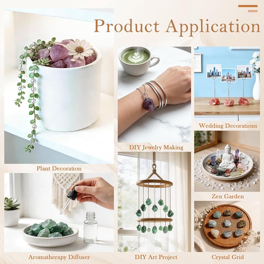 Multiple Uses of Raw Stones: Rough rocks stones are ideal for plant pots and houseplants if you want to add extra beauty for home decor. Raw crystals came in different sizes. You can make wire wrapping crystal pendants, wind chime or other DIY crafts. Also can be collected as crystal stone collection, home or garden display & decoration(feng shui), rock cabbing and more.