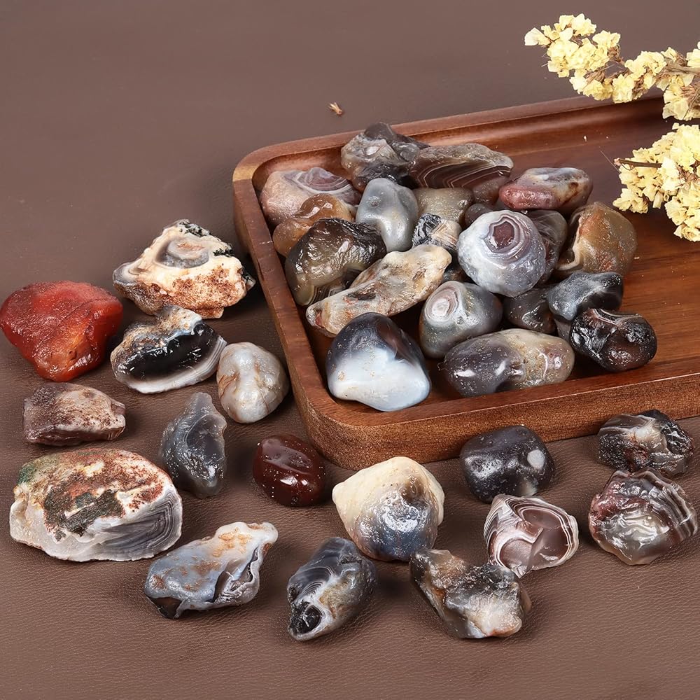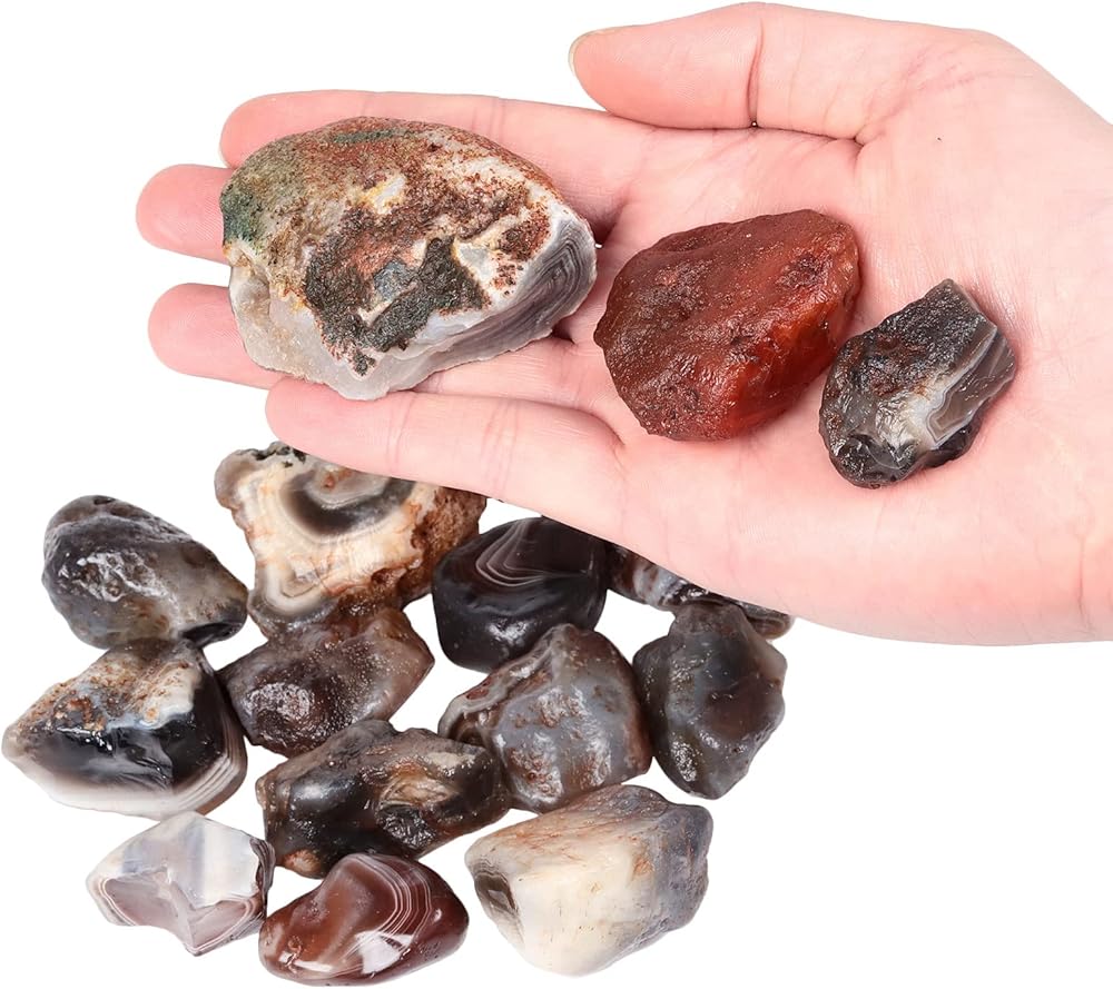 You will receive 1 lb/460 gram rough stones(about 8-14 pieces), comes with a velvet bag for gift ready. Each stone is natural raw and unique, please allow the sizes, shapes, colors and patterns may small vary. Each raw stone sizes range from 0.98-1.98 inch