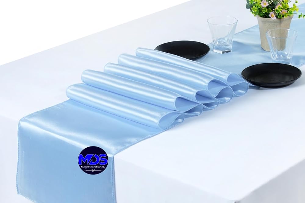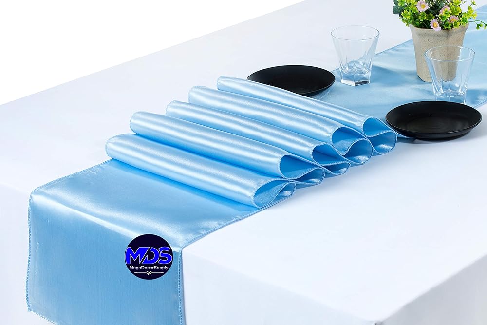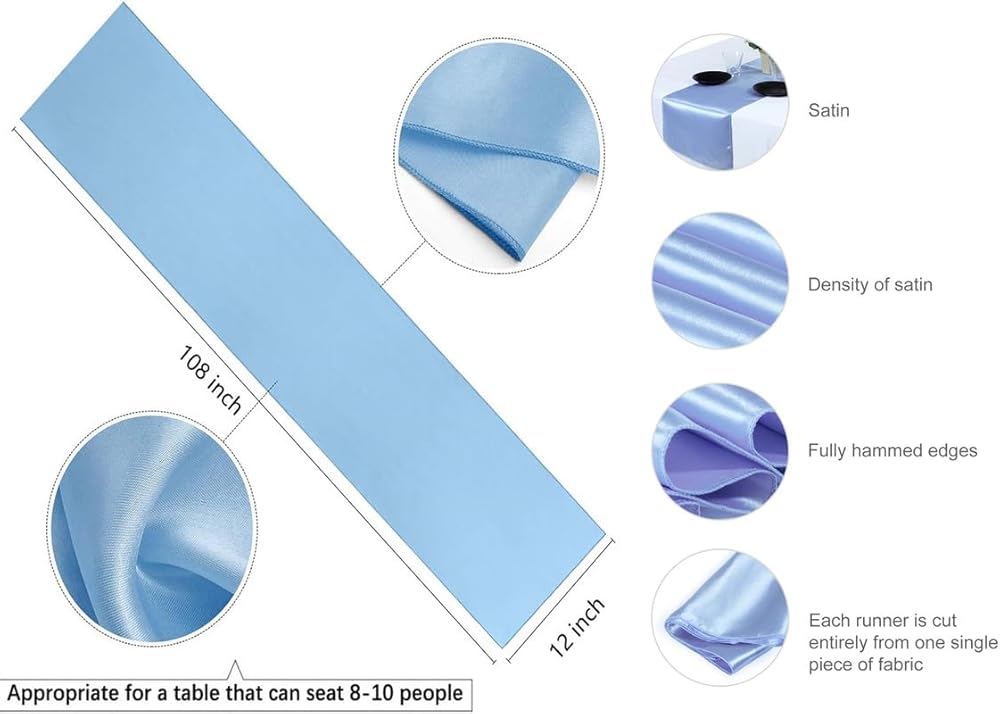 Quantity & Size : The package includes 10pcs Satin Table Runners. Each measures 12x108 inches in size (12" x 108" / 30cm x 275cm).