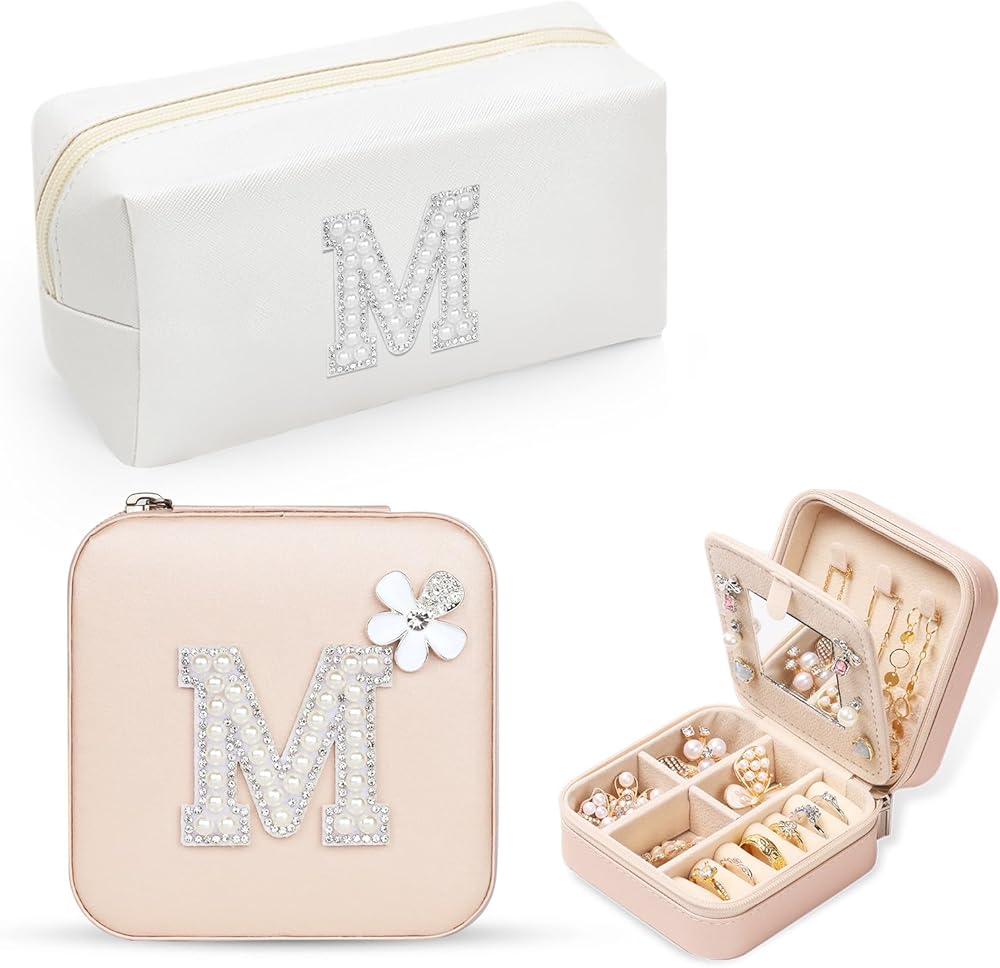 【Unique Gift】 Our personalized initial jewelry box and makeup bag set makes a special gift for daughters, granddaughters, wives, mothers, sisters, girlfriends, bridesmaids, brides, teachers, and friends.Ideal for birthdays, Christmas, anniversaries, Valentine's Day, Thanksgiving, and Mother's Day, as well as graduation gifts and teacher appreciation gifts.