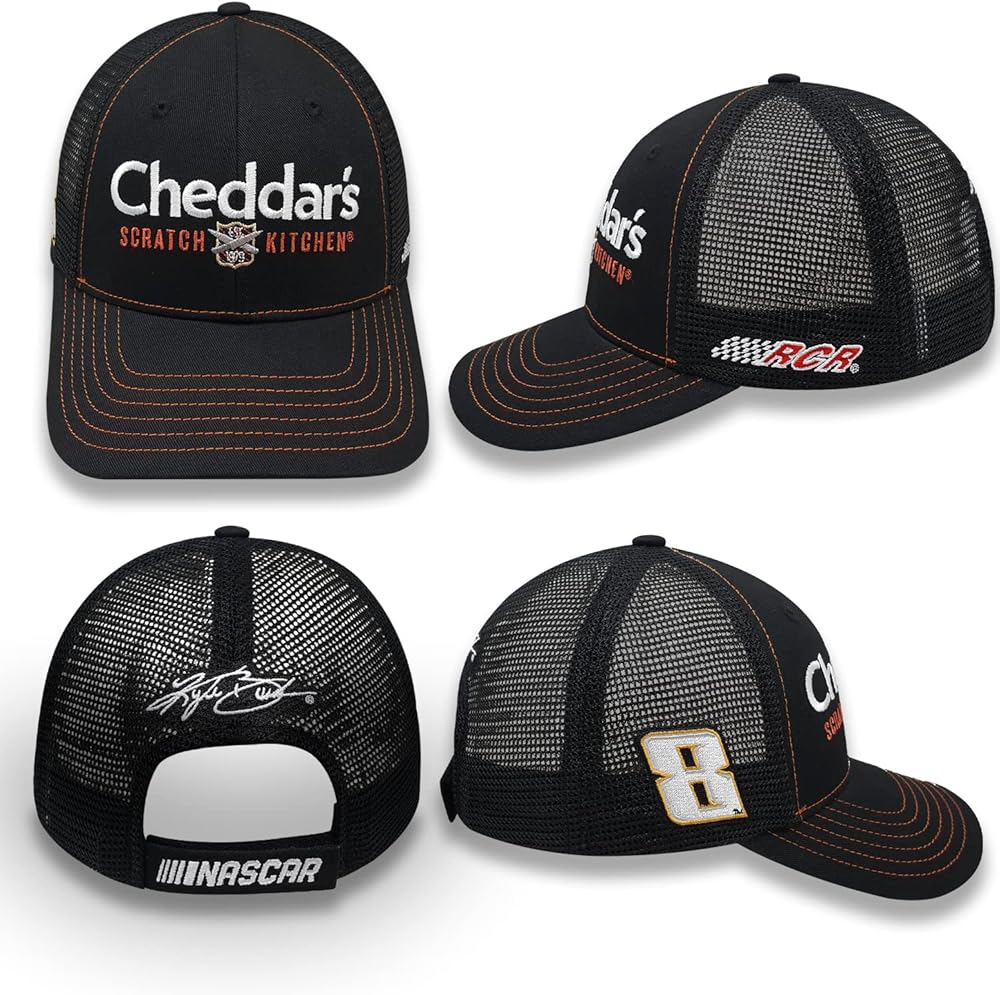 Kyle Busch Cheddars #8 2023 Sponsor Hat NASCAR Adjustable Racing Red Mesh Black Baseball Cap