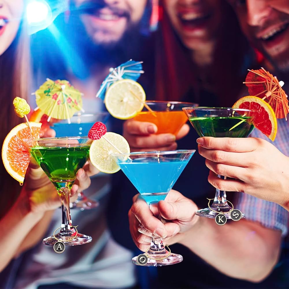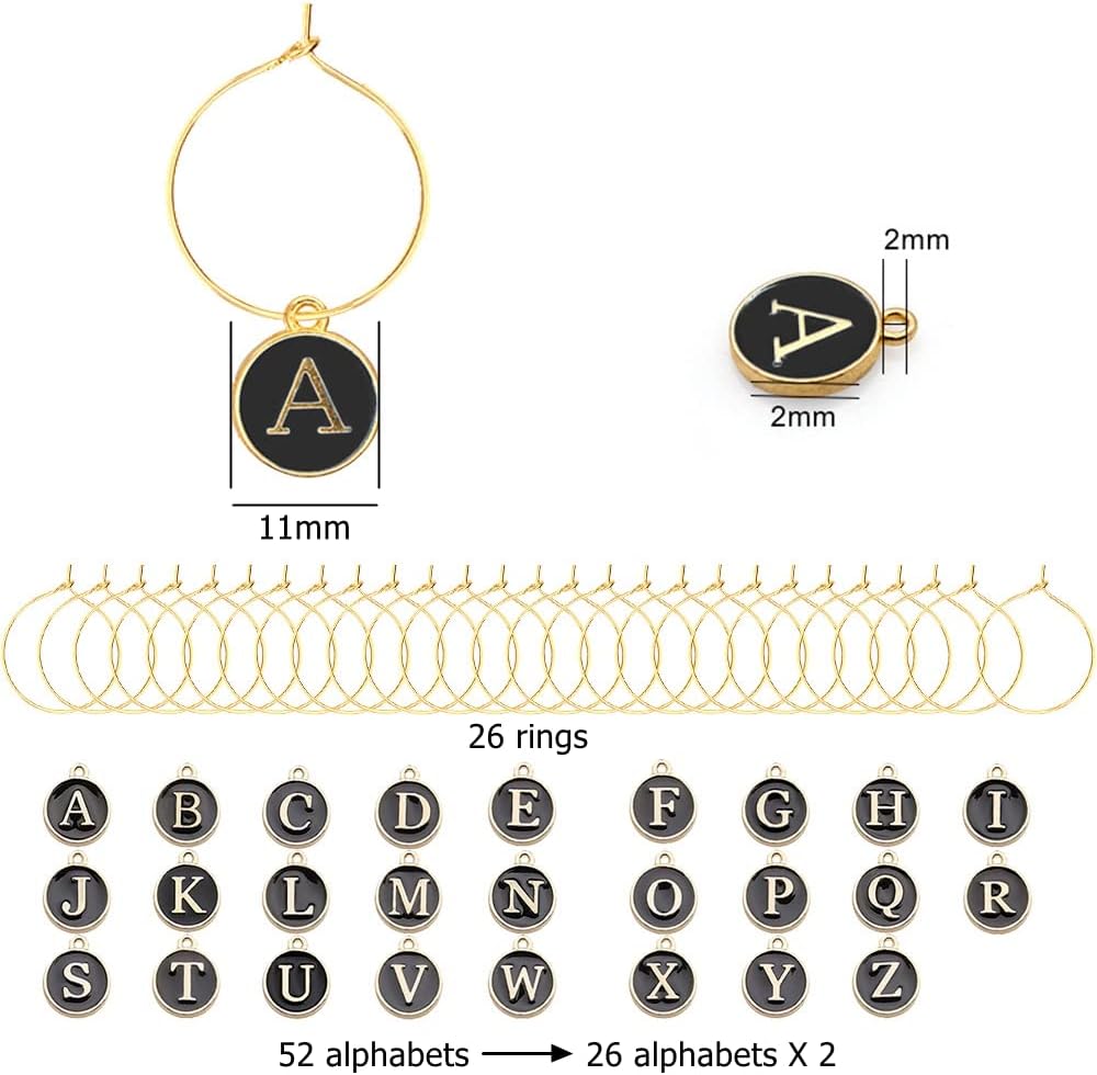 【Easy to Use】 It is easy to use these alphabet tags to recognize wine glass, just unlock the hanging ring and choose one or several alphabet you need, connect the ring to the stem of a wine glass, and it is finished. For DIY crafts making, you can use these alphabet tags as decorations of crafts.