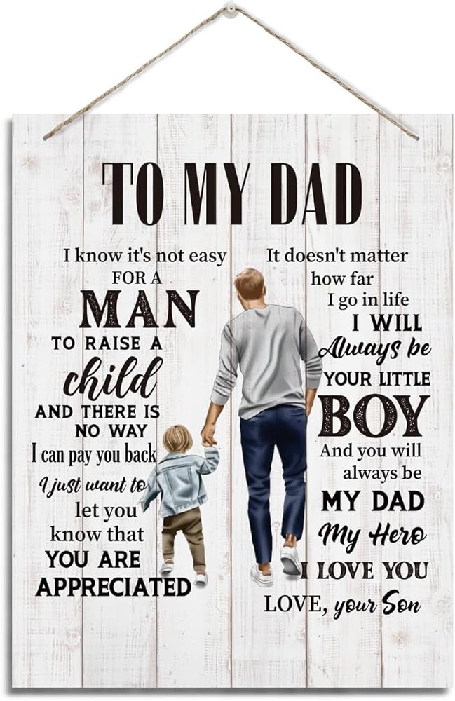 To My Dad, Dad Gift from Son, Wall Decor Art, Decorative Hanging Wood Signs, Appreciation Gift for Dad, Father's Day Gift for Dad, I Know It's Not Easy For A Man To Raise A Child Sign