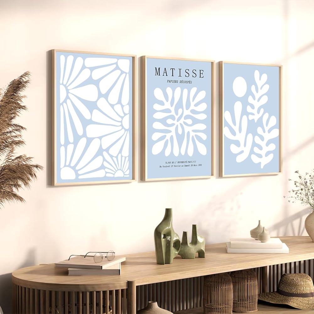 High-Quality Prints: Our set of 3 matisse blue wall art is crafted from premium canvas poster material and printed with high-quality ink.