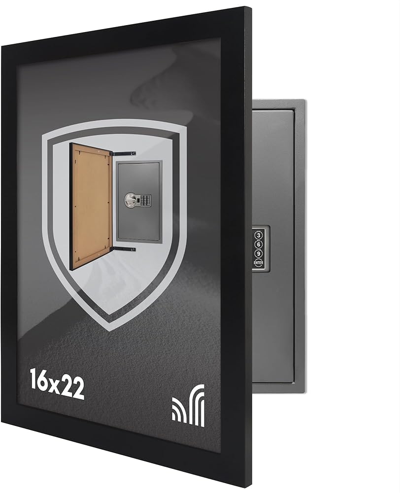 Security Wall Safe Cover: This 16x22 frame, made from durable engineered wood (MDF), is designed to discreetly cover your in-wall safe or panels. This hidden wall-safe cover allows you to display memories while keeping your valuables out of sight.
