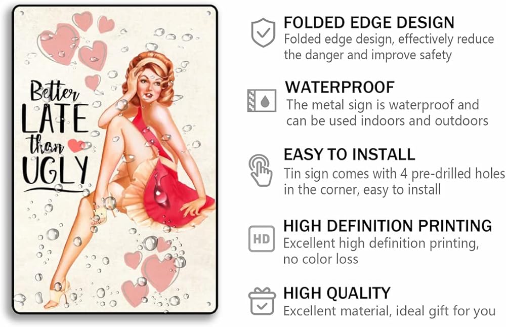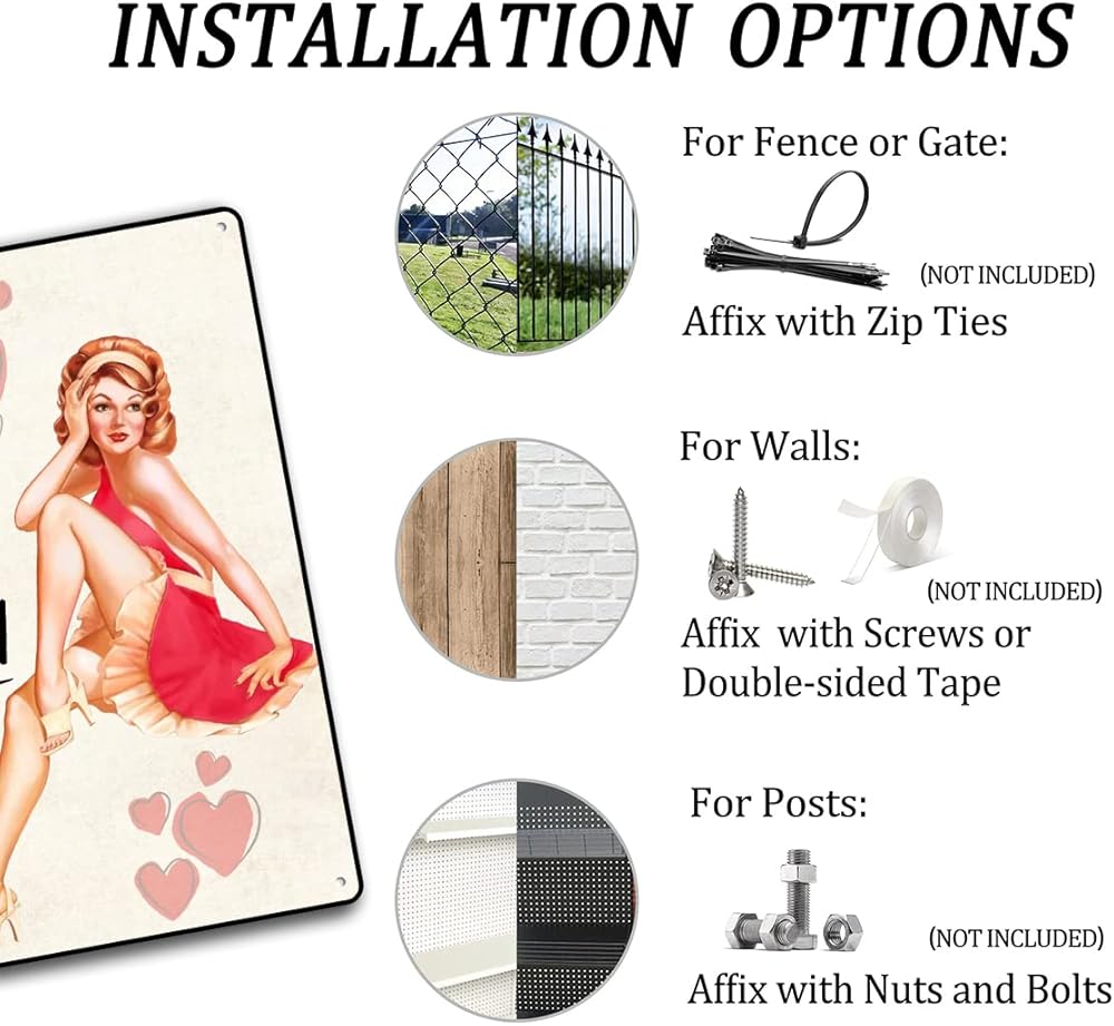 【Easy to Hang】: The Metal Sign Has Pre-drilled Holes for Easy Hanging. the Edges of Each Tin Sign Are Crimped to Ensure Safe Handling. Double-sided Tape Can Also Be Used As Another Hanging Method.