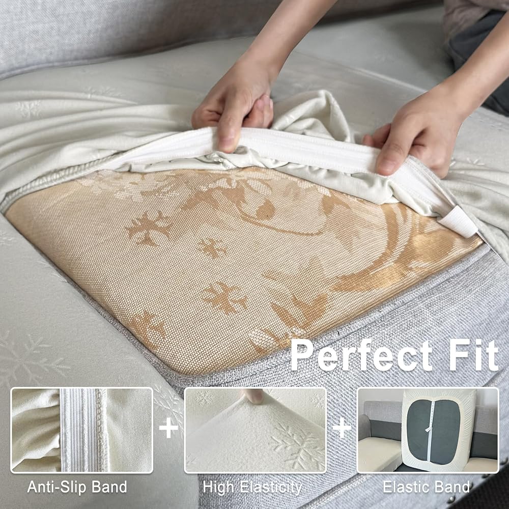 NON-SLIP & EASY INSTALLATION: High elastic bottom and back bands design make your sofa cushions all around protected, stay tight in place and fitted well even with children or pets jumping on it. You can take it on or off with effortless
