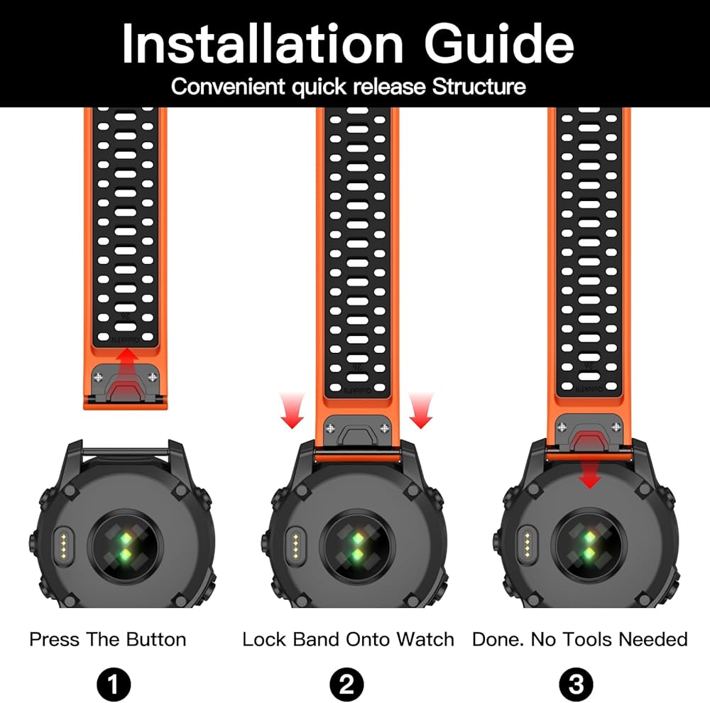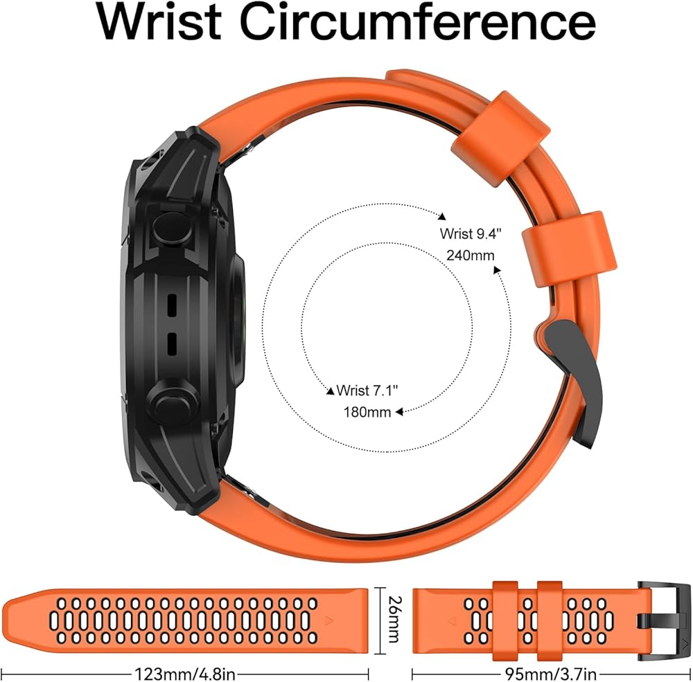 COMPATIBLE MODELS --- Breathable Silicone Sport Band Compatible with Garmin Femox 8 AMOLED 51mm/Fenix 8 MIP 51mm/Fenix 7X / Fenix 6X / Fenix 6X Pro / Fenix 5X / Fenix 5X Plus / Fenix 3 / Fenix 3 HR / Descent MK1/ Descent MK2 / D2 Delta PX / D2 Charlie / Tactix Delta. NOTE: The Smart Watch is NOT included.
