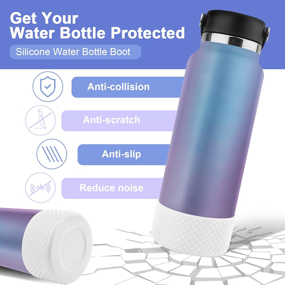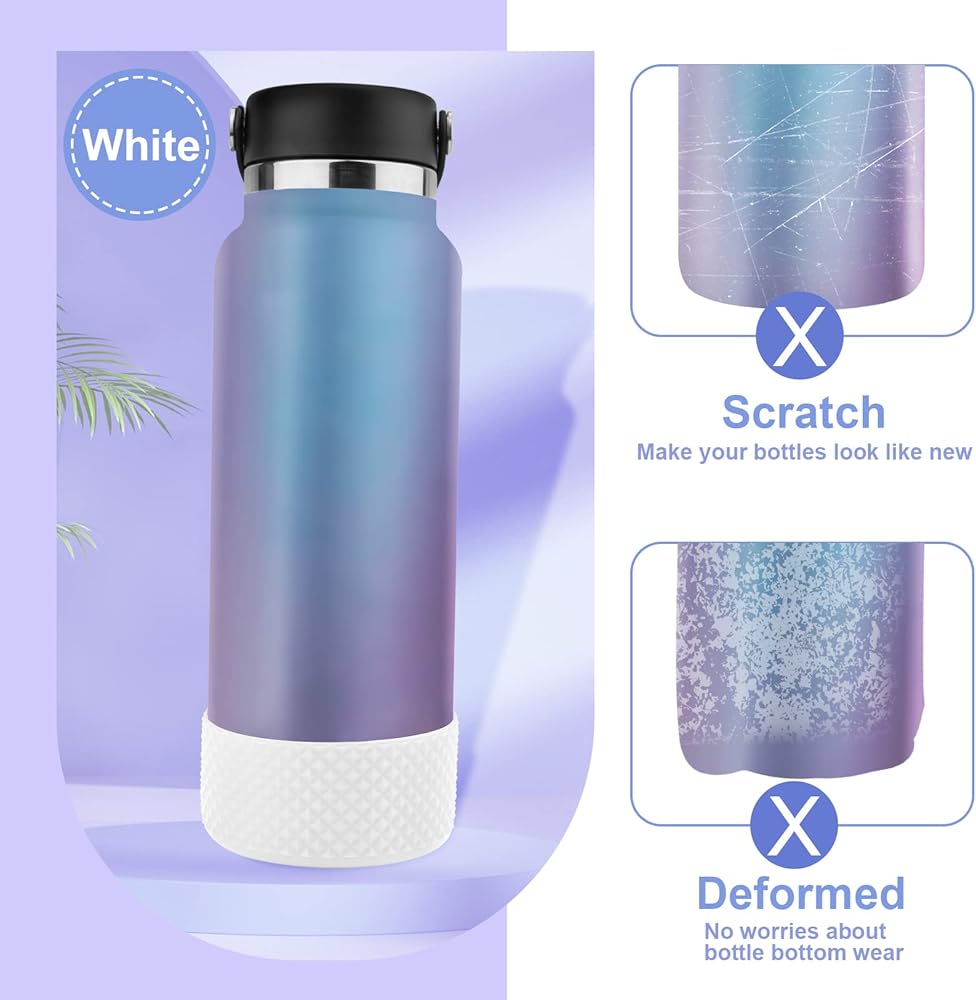 👍 【WELL PROTECT】- Our silicone bottle bottom boot snugly fits bottle bottom and is not easy to slip off. Help to protect your beautiful bottles against dings, dents, scratching and damage. Also keeps the noise down, quieter when setting down the bottle on table surface. Provide a longer life for your metal water bottle.