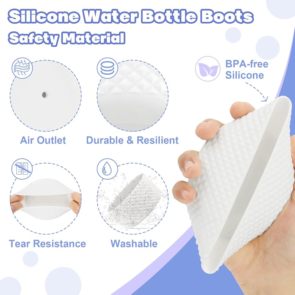 👍 【BPA FREE】- BPA-FREE silicone, safe for all ages. Made of super soft and stretchy silicone material, our water bottle boot can be taken off and washed after using for a period of time. Durable, reusable, guaranteed to NEVER come loose! Easy to take it on and off. Perfect for all sports and outdoor activities. Ideal for school, work, picnic, hiking, camping, yoga and so on.