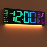 JALL 16" Large Digital Wall Mount Clock, Count Down Timer, Alarm, Big LED, RGB Color, DST, Temperature for Living Room Classroom Desk, Xmas, Birthday Gift for Senior Mom Dad (White Orange, 16 inches)