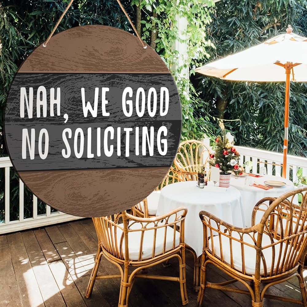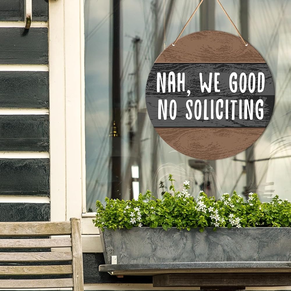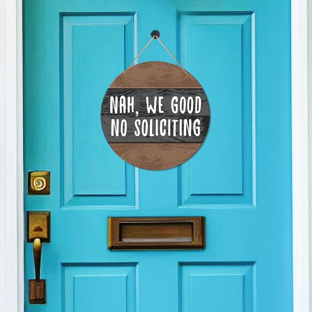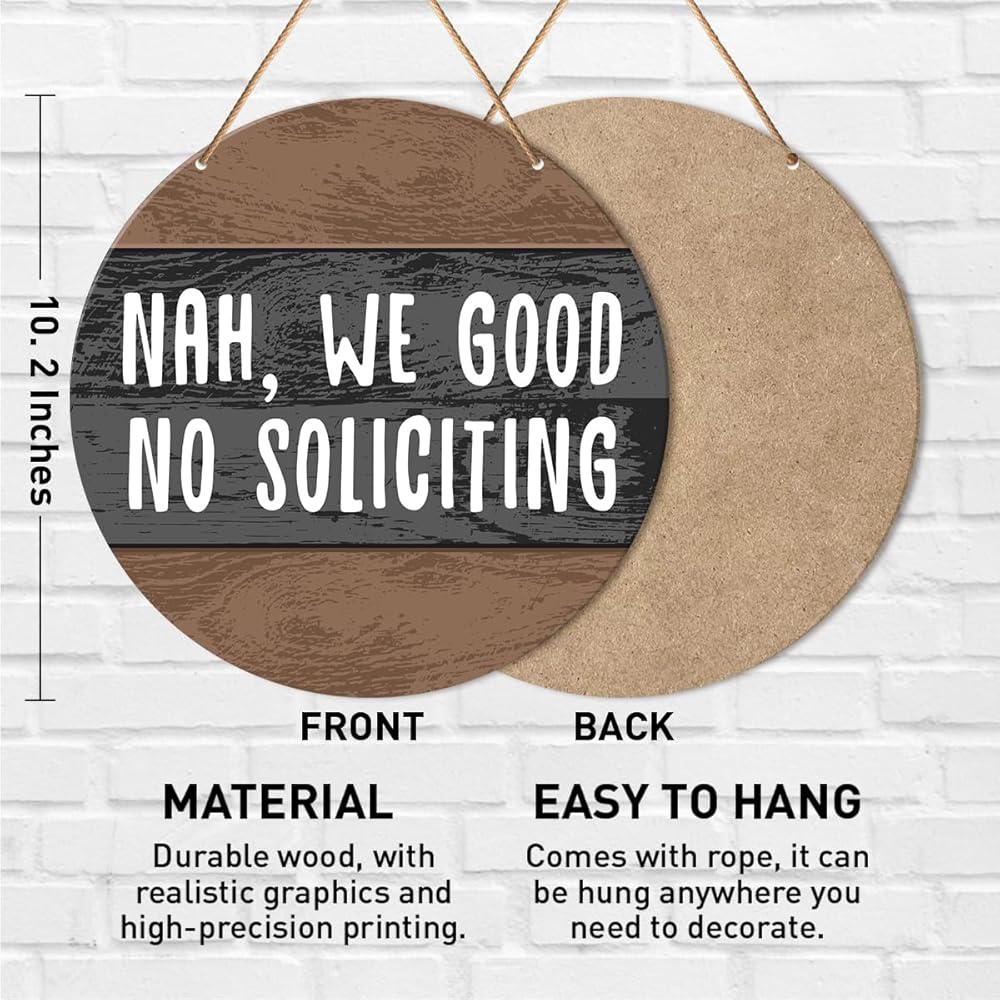 Muktoujaumai No Soliciting Door Sign, Do Not Disturb Door Hanging Sign Decor Farmhouse Wall Decorations Wood Sign for Front Door, Entryway, Porch, Nah We Good No Soliciting