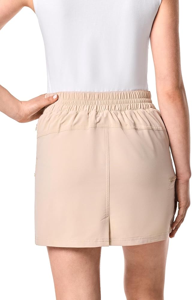 FEATURES: Drawstring waistband, anti-pickpocket hidden left side seam zipper pocket, and anti-pickpocket hidden zipper pockets under back yoke; Center front skirt length 16 1/2 inches (size medium); 9 inch inside short inseam; Hand wash, line dry; Imported