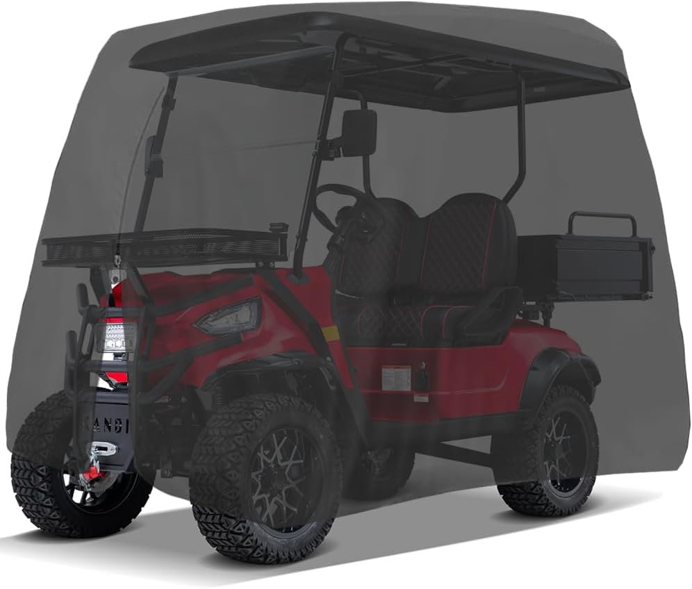 【All-Around Protection】: This golf cart cover Protect your cart from bad weather.The golf cart cover protect your golf cart away from rain, UV, sand, snow, dust, fog, scratching and other bad weather conditions.