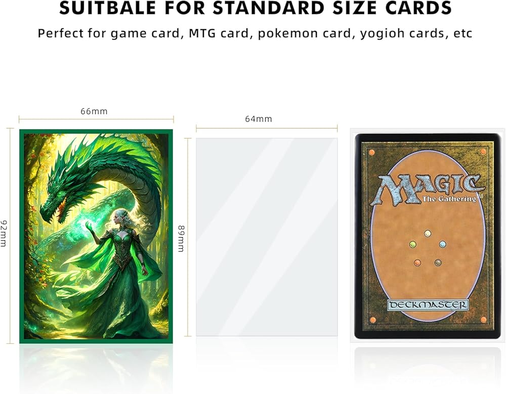 - أكمام ملائمة تمامًا - 64 × 89 مم (2.5 × 3.5 بوصة) - تناسب البطاقات الصغيرة مثل بطاقات mtg والألعاب وبطاقات الرسوم المتحركة. مصممة للأكمام المزدوجة.